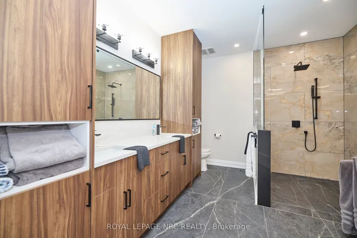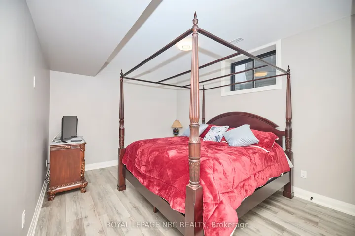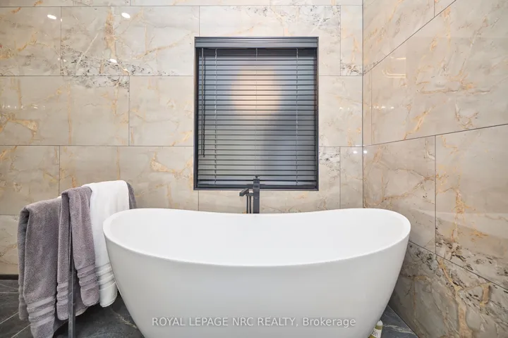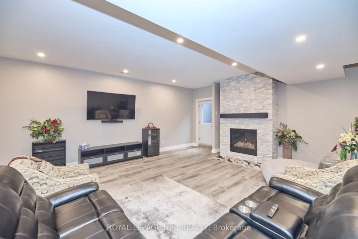 +"PublicRemarks": "Amazing home in Excellent location near the QEW, Shopping and US border. 3 + 2 bedroom Bungalow finished top to bottom. This home has MANY upgrades you will not find in homes at this price point. Lifetime diamond shape metal roof, ICF foundation, 3 car insulated garage, separate walk out to basement, huge covered rear deck. 9 ft ceilings on main floor, 10 ft tray ceilings in LR & DR. 9 ft basement height. Engineered hardwood throughout main level. 46 inch linear gas fireplace, Quartz Double waterfall edge on oversized kitchen island, glass wine display, 12 ft double sliding patio door to covered porch. 4 zone sound system, 7 camera security system, fully finished basement with 2 additional bedrooms, 5 piece bath and huge rec room w/ gas fireplace. Primary ensuite and basement bathroom have heated flooring. Outdoor wooden Sauna is included. 4 years remaining on Tarion warranty. Quartz countertops in all bathrooms. Newly finished concrete/aggregate driveway. Beautiful home, you will NOT find another like this one. **Listing agent is related to sellers. Purchase price shall include a 10.01 m x 12.19 m parcel at the rear of property. Swim Spa is negotiable."