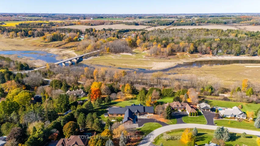 +"PublicRemarks": "Set on nearly 2.5 acres of beautifully landscaped waterfront grounds, this fully renovated lakeside estate offers over 9,200 sq. ft. of luxurious living space. Thoughtfully designed for both entertaining and everyday living, the home features 6 bedrooms and 6 bathrooms, including a private guest, nanny, or in-law suite. The stunning 19' x 32' chef-inspired kitchen opens to expansive living and dining areas, all capturing breathtaking lake views. A resort-style indoor pool wing provides year-round enjoyment with a 16' x 32' concrete saltwater pool, Dectron Dry-O-Tron dehumidification system, cedar ceiling, textured concrete walls, custom lighting, hot tub, and sauna. Exceptional craftsmanship is evident throughout, with 18'-21' vaulted ceilings on the main level, 10'-11' ceilings on the lower walkout, custom plaster crown mouldings, architrave-trimmed millwork, a Mediterranean-style metal roof, and two waterproof decks overlooking the lake. The property offers a 3-car attached garage plus an oversized 2-car detached garage, ideal for vehicles, boats, or recreational equipment. Energy efficiency and reliability are delivered through two ground-source heat pumps with 14 drilled wells, a 35 k W whole-home standby generator, propane backup pool heater, multi-zone forced-air heating and cooling, and in-floor radiant heating. Enjoy four-season waterfront living with boating, fishing, waterskiing, snowmobiling, and nature trails at your doorstep. Ideally located minutes to Fergus, Elora, and Guelph, this is a rare offering combining refined luxury with serene lakeside living. See attached feature sheet for full details."