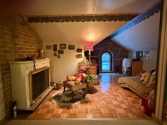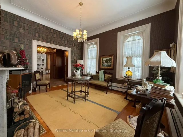 +"PublicRemarks": "This incredible Victorian home is steeped in history with stunning architecture, regal finishes & details throughout, including 4 gorgeous marble fireplaces! The majestic solid brick home was built in 1880 and welcomes you into it's grand foyer with soaring, 11.5' ceilings and a beautiful staircase, the traditional parlour and part of what once was a lavish ballroom, now used for formal dining. Beyond that, the back living quarters houses the home's kitchen, a main floor bedroom, den, office & 4pc.bath which could easily be converted into a sizeable in law suite. Ideally set up for it's previous vocation as a beautiful bed & breakfast, the second floor provides an additional 4 bedrooms, 2 with their own ensuites, and a spacious 4 pc. bath, while the third floor offers a private and fully functional loft with yet another spacious bedroom and 3 pc. ensuite, and a sitting room overlooking the south side of the property, reminiscent of a turret in castle. The unfinished, yet dry, full basement offers a cold room, workbench and endless storage with possibilities for a games room and more! Outside, this impressive 1.45 acre property features a huge 52' x 62' shop with attached carriage house and endless possibilities and a long, paved driveway with tons of parking availability. The yard is beautifully treed providing privacy and shade as well as room to roam and enjoy!! Surrounded by the peaceful village of Paisley where the Saugeen & Teeswater Rivers meet, kayaking, trails and unique shops invite you to be a tourist in your own hometown, you will not want to miss your chance for this incredible, historical property. Historical designation not in place. Central vac, Generac generator, natural gas boiler, radiant heat, water softener & water heater owned."