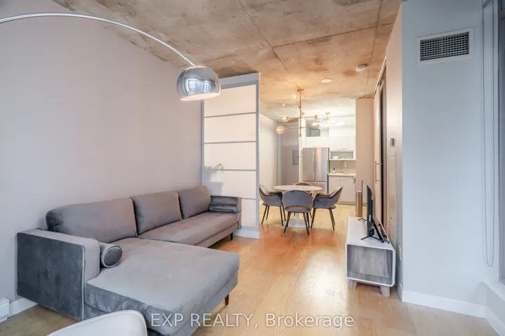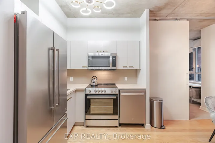 +"PublicRemarks": "This stunning 2 bedroom, 2 bathroom southeast corner suite is a must-see! Located in the heart of King West, this sun-drenched unit offers incredible east-facing views of the downtown skyline and the CN Tower, along with beautiful southerly glimpses of the lake. The suite features 9ft hard loft ceilings and an expansive open-concept layout, making it perfect for both relaxing and entertaining.The spacious primary bedroom comes with a custom-built closet, while the second bedroom features a clever Murphy bed to maximize space. The modern kitchen is equipped with a custom island counter, ideal for cooking or enjoying a casual meal, and opens up to the living area which is flooded with natural light thanks to large windows throughout. Hardwood floors run seamlessly throughout the suite, adding a touch of elegance to the space. Step outside to the generous 95 sq ft balcony, perfect for enjoying your morning coffee or taking in the stunning views of the city. The parking spot is a standout feature, it's large and conveniently located near the elevator for easy access. Everything you could want is right at your doorstep. TTC, trendy King West shopping, and exceptional restaurants are just a short walk away. For outdoor enthusiasts, Trinity Bellwoods Park, Massey & Stanley Parks, Liberty Village, and the Waterfront Trails are all within minutes. The nearby No Frills, Metro, LCBO, Tim Hortons, Starbucks and pharmacy add to the convenience of the location, making this an unbeatable lifestyle opportunity. Dont miss out on this remarkable suite with its incredible views, modern features, and unbeatable location."