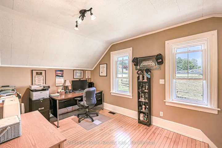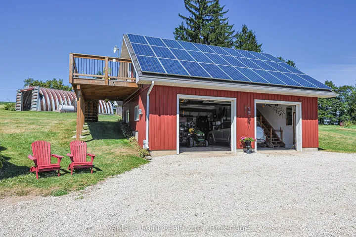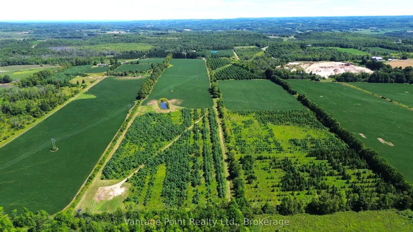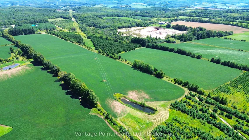 +"PublicRemarks": "A truly rare offering, this remarkable farm property spans 140.5 acres comprised of a 90.5 acres plus a separate 50-acre rear parcel, blending productive farmland, natural beauty, and timeless homestead charm. The beautifully preserved 4-bedroom, 2-bath century home is in exceptional condition and showcases original character throughout, including two separate staircases, refinished original flooring, generous principal rooms, and thoughtful upgrades that seamlessly balance historic appeal with modern comfort. Supporting the main residence is a 30x30 detached garage, fully spray-foamed with 100-amp service, featuring a finished upper level ideal for office, studio, or additional living space, complete with a deck overlooking sweeping countryside views. Solar panels installed in 2017 are net-metered, resulting in impressively low hydro costs averaging approximately $45 per month on equal billing. The property is well equipped with functional outbuildings, including a 20x40 Quonset hut with hydro and concrete floors, along with a 10x12 garden shed. The land itself is outstanding, offering approximately 42 acres of workable, high-quality loam soil with last year's crop being soybeans. There is a plantation of roughly 20,000 mixed trees (pine, spruce, oak) that adds long-term forestry value and potential future income. Two ponds, including one stocked with speckled trout, offer water access and recreational value. The additional 50-acre rear parcel features a mature mixed bush of cedar, pine, maple, ash, and poplar, also backing onto Blacks Creek, providing excellent opportunities for recreation, trails, or sustainable woodlot use. Ideally located just 15 minutes to Owen Sound and 20 minutes to Meaford, this exceptional property offers the perfect balance of rural privacy, agricultural potential, and refined country living. Additional income is generated through the tenant farmer. Outdoorsman's dream with an abundance of wildlife throughout the property."