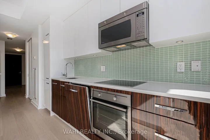 +"PublicRemarks": "So Ho Champagne, a hotel-style residence. Amenities, include a spacious fitness facility, private theatre, party lounge, executive meeting room, terrace with BBQ stations, and outdoor pool. This executive 1-bedroom, 1-bathroom suite offers approximately 617 sq ft of interior space plus a west-facing balcony. Floor-to-ceiling windows, new white-oak flooring, and an open-concept design fill the unit with natural light.Upon entry, a generous foyer leads to an upgraded 3-piece bathroom. The kitchen flows seamlessly into the living area and features white quartz surfaces, integrated appliances, and a large island with seating. The living room includes a built-in media unit with TV mount and storage, while the adjacent bedroom offers added shelving for convenience. Step onto the balcony to enjoy sunset views from the built-in daybed. Flooring includes hardwood and wall-to-wall carpet. HYDRO EXTRA. Parking available EXTRA. No Guaranteed"