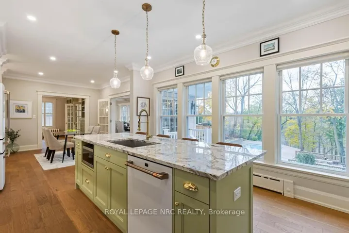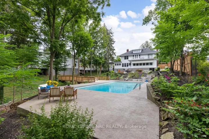 +"PublicRemarks": "WELCOME TO YOUR LUXURY DREAM HOME IN NIAGARA! Stunning, private and exclusive Family Estate ,set on fully fenced 2 acres in the heart of the City, has been beautifully updated throughout. Designed and built by Custom Builder Pym & Cooper PLUS rarely offered new Carriage House with 4 pad heated garage and lrg 2nd floor apartment w/ open design and soaring vaulted ceiling. This outstanding property is set on a beautiful sprawling ravine lot, with breathtaking nature and WATER views, your own private walking trails. Nestled amongst an enclave of Executive homes, backing onto 12 Mile Creek on prestigious Hillcrest Avenue, featuring the highest quality craftmanship, exceptional millwork and luxurious design details. No expense has been spared! Main house with beautiful entry, large foyer and dramatic staircase, custom Chef's gourmet Kitchen w/high end appl's, w-i pantry, quartz. Formal Livingroom w/ custom cabinets, fireplace, white oak flooring thruout, custom lighting,French drs, Office with f.p., lrg Dining rm w/custom bookshelves, wet bar, wall to wall windows overlooking spectacular water views, i.g. heated pool, scenic nature. 4 lrg bedrooms including Primary suite with spa like ensuite, f.p, w/o to private balcony. 3rd floor Loft with pine vaulted ceiling. Impressive fin. LL w/ Recrm, f.p., walkout, wine cellar, 3 pc bath, and plenty of storage. Carriage House heated garage w/ kitchenette, powder rm, f.p., walkout to large patio. 2nd floor of Carriage House features large open Greatrm, full kitchen, large bedroom, 3 pc. bath, laundry and storage. This setting is irreplaceable and only steps to the City's vibrant downtown, St. Catharines Golf Club, Montebello Park, PAC, Meridian Arena. Close to major highways, Ridley College, Brock U, Niagara Wine Region, Hospital, scenic parks, hiking and cycling trails, major airports. Perfect for family living and entertaining. Live your dream! See virtual tour and Supplemental documents for more information/ floor plans."