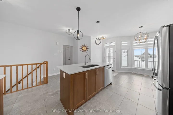 +"PublicRemarks": "Welcome to Cardinal Creek Village in Orléans, a sought-after community by Tamarack Homes known for its scenic walking trails, rolling landscapes, and nearby water views. Located on a quiet court, this extensively upgraded semi-detached walkout bungalow offers exceptional design, functionality, and true move-in-ready living. Interlock walkway and extended driveway lead to a welcoming front veranda. The main level features full tile flooring throughout, including the bedrooms, with flat ceilings, pot lights, crown moulding, and large windows, creating a bright, open-concept living and dining space. Patio doors from the living room lead to an elevated deck, ideal for enjoying evening sunsets. The upgraded kitchen offers ceiling-height cabinetry with two-tone finishes, custom fridge cabinetry, quartz countertops, extended island with breakfast bar, undermount sink, upgraded faucet, herringbone tile backsplash, gas stove, and detailed lighting. The primary bedroom includes a walk-in closet and an upgraded 3-pc ensuite with quartz counters and a double shower. The main level also features a 2-pc bath, a walk-in pantry or optional laundry, and inside access to an oversized single-car garage. The finished walkout basement with high ceilings includes a second bedroom with a walk-in closet, a 5-pc bath with double sinks and quartz counters, a separate laundry room, and a rec room with French doors and a wall-mounted fireplace. Patio doors lead to a private interlock patio. Plenty of storage. Enjoy access to community amenities, including a clubhouse, tennis courts, parks, and scenic walking trails.Additional features include a gas line for a BBQ, a tankless water heater, an air exchanger, additional kitchen outlets, dimmable pot lights, modern interior doors with matte-black hardware, and oak staircase railing. A rare opportunity to own a premium, thoughtfully upgraded walkout bungalow in one of Orléans' most desirable communities. CLUB HOUSE $409/yr"