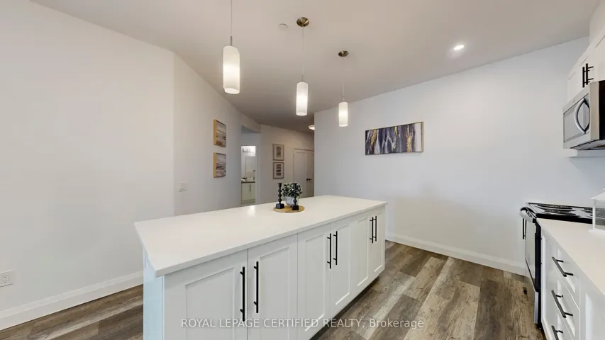 +"PublicRemarks": "Executive Condo! This upscale South Hill suite offers a bright, open concept layout with complimenting décor and soaring 9 ft ceilings. The stunning eat in kitchen features sleek white cabinetry, quartz countertops, stainless steel appliances, pot lighting, and a centre island with pendant lighting-perfect for meal prep and casual dining at the breakfast bar. In addition to large eat-in kitchen, you will find two working spaces. The large den at the entrance is ideal for your home office with personal library. The second den beside kitchen is ideal add on space for play area or gaming room. The spacious living room is enhanced with modern vinyl plank flooring and a large sliding door that opens to a private balcony, creating an inviting indoor and outdoor flow. This suite includes 1 underground parking space and 1 locker for added convenience."