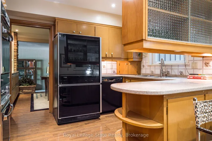 +"PublicRemarks": "Magnificent Mid-Century Modern on quiet court near Cootes. Cherished by the original owners for 69 years, this one-of-a-kind two-storey home was thoughtfully designed for entertaining and family living. Offering over 3,657 sqft the home features an impressive 20x46 ft addition with a dining room that seats 14 guests and a spectacular family room with beamed ceilings surrounded by floor-to-ceiling windows overlooking the pool and private garden oasis, truly an entertainer's dream. Built in 1956 the home's design reflects timeless quality with high-end finishes and distinctive décor. Enter the foyer with slate floors and into the sunken living room with stone fireplace, and up to a dinette with custom built-in cabinets and stunning marble countertop. The retro kitchen features quartz counters, double ovens, cooktop, and built-in banquette that leads to a massive games room, which was converted from a double car garage, with huge pool table for family fun of all ages. Step out to the pool cabana with convenient kitchenette, 2 change rooms, 3-pc bath, and out to the lush private garden oasis with huge 20X40 ft pool, heated through rooftop solar panels, multiple seating areas and custom designed fence with cool coloured inserts. The main floor also includes a private office and 2-pc bath with marble counters, and on the second floor you will find 4 spacious bedrooms, including the primary with 3-pc ensuite and walk out to a rooftop terrace, plus a 4-pc retro family bath, and walk-in linen closet. The finished basement offers even more living space with an office, recreation room with wet bar, 2-pc bath, laundry, and ample storage. Perfectly located just steps to Cootes Paradise, Princess Point, Waterfront Trail, Churchill Park, schools and Westdale Village, shops, restaurants, amenities, and theatre. Minutes to Mc Master University & Hospital, Go-transit & highway access, make this a super convenient Westdale North location to call home. RSA"