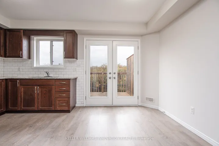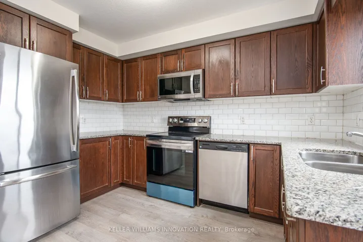 +"PublicRemarks": "Welcome to this bright and well-maintained 3-bedroom, 1.5-bath townhome offering 1,457 sq ft of functional living space in a growing Kitchener neighbourhood. The main floor features a spacious front living room with large windows, a convenient powder room, and a modern kitchen with stainless-steel appliances, ample cabinet storage, and generous counter space. The kitchen connects to the dining area, where double French doors open to a private deck-perfect for morning coffee, BBQs, or quiet evenings outdoors. Upstairs, you'll find three comfortable bedrooms and a full 4-piece bathroom. The primary bedroom offers his-and-her closets, and the home includes in-suite laundry and plenty of additional storage.Enjoy dedicated parking at your door, with visitor parking available in the complex. Located steps from playgrounds, sports fields, pickleball courts, Strasburg Creek Natural Area and other scenic walking trails in Kitchen. A brand-new indoor recreation complex is under construction nearby, soon to feature swimming pools, a turf fieldhouse, and fitness facilities-adding even more value to this convenient location.The area continues to grow, with new shopping and dining options, along with easy access to schools, public transit, the expressway, and Highway 401.This move-in-ready townhome offers a balance of comfort and everyday convenience-perfect for families or professionals looking for a welcoming place to call home. (Tenant pays Cable TV, Garbage Removal, Heat, Hydro, Internet, Janitorial, Maintenance/Repairs, Natural Gas, Tenant Insurance, Water)"