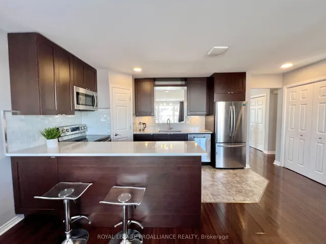 +"PublicRemarks": "Searching for rental income or space for multi-generational living? This all-brick detached home with an in-law suite in the highly regarded Stanley Park neighbourhood offers versatility and an excellent east-end Belleville location close to schools, parks, the hospital, and public transit just steps away. The layout offers 2+2 bedrooms and 3 full baths, 2 full kitchens and ensuite laundry in both units, making it easy to live in one unit while accommodating family or generating income in the other. The upper unit spans the entire main floor plus a portion of the basement and includes three bedrooms and two baths, highlighted by a primary suite with walk-in closet and ensuite. The updated kitchen features quartz countertops and stainless steel appliances, overlooking the living room with a gas fireplace and walkout to the back deck. A dining room with pass-through adds everyday convenience and functionality. The lower unit offers one bedroom, one bath, a functional eat-in kitchen, living room, and den, along with a separate entrance to the side yard. Large windows throughout the lower level provide an airy, above-ground feel. Both units showcase engineered hardwood flooring, updated kitchens, baths, and modern light fixtures. Prefer a single-family setup? Simply leave the connecting doors open and use the lower level as guest space or a teen hangout. Outside, enjoy a fully fenced yard with multi-tier decks offering plenty of space for entertaining, play, or pets. The home also enjoys a partial view of the greenspace across the street. Thoughtfully updated, well located, and designed to offer options-this is a home that simply works."