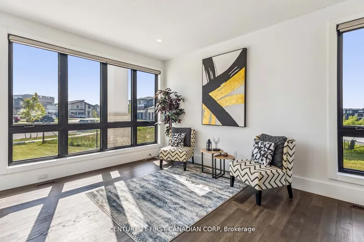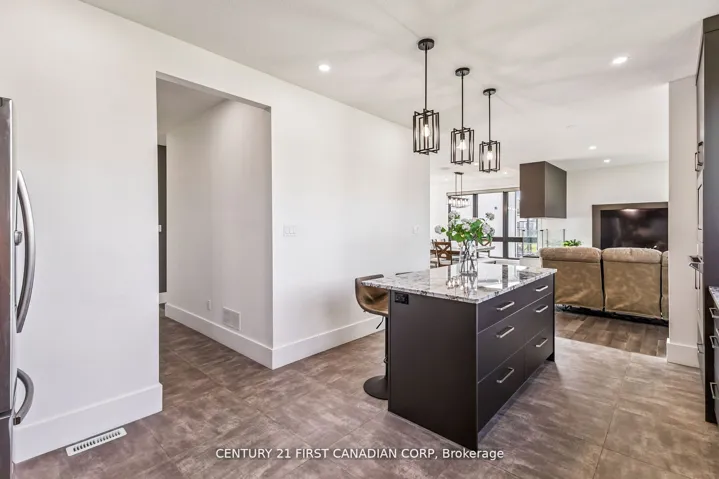 +"PublicRemarks": "Welcome to 1429 Medway Park Drive a rare opportunity to own a custom-built luxury residence in the highly sought-after Creekview community of Northwest London. Situated on a premium pie-shaped walkout lot, this home offers unobstructed pond and serene ravine views, with no neighbouring house on one side, providing both privacy and scenic beauty. This designer home boasts approximately 3,800 sq ft of exquisite living space, finished with many upgrades that blend elegance and functionality. As you enter the grand 18-foot foyer, you are greeted by refined details like smart blinds throughout, LED stair lighting, and a statement 80-inch Dimplex steam fireplace in the open-concept living room. The heart of the home is the gourmet kitchen, featuring ceiling-height modern cabinetry, granite countertops, under-cabinet lighting, a stylish backsplash, and an oversized pantry all opening onto a spacious living area with rich engineered hardwood floors and floor-to-ceiling windows overlooking the picturesque pond. From here, step out onto the wraparound deck with glass railings a perfect outdoor sanctuary for morning coffee or sunset entertaining. Upstairs, you will find four spacious bedrooms, including a luxurious primary retreat with breathtaking pond views, custom built-ins in the walk-in closet, and a spa-inspired ensuite with in-floor heating, a double vanity, tiled shower, and soaking tub. A junior suite with private ensuite, additional full bath, and a sunny home office/lounge with balcony access complete the upper level.The fully finished walkout basement extends the homes versatility, offering a fifth bedroom, large recreation space, cold bar, full bath, oversized cold room, and private access for potential in-law or income suite flexibility. This home is ideally located close to Western University, University Hospital, shopping, and top-rated schools, making it the perfect blend of luxury, lifestyle, and location."