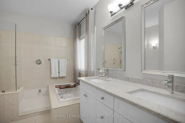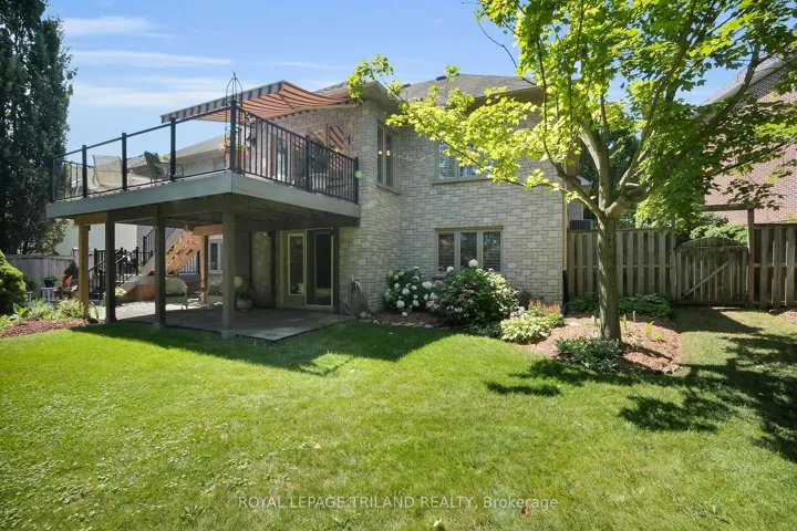 +"PublicRemarks": "Discover the epitome of refined living in this custom-built bungalow, a true standout in Byron's most prestigious enclave, Warbler Woods. From the manicured gardens to the breathtaking walk-out lower level, every inch of this residence radiates sophistication. The main floor offers a masterclass in design, featuring a sun-drenched, functional kitchen, formal dining, and a primary retreat with a spa-inspired ensuite. The other two bedrooms are on the opposite side from the primary suite and today the versatile third bedroom is used as a cozy media den. Below, the expansive, light-filled lower level serves as the ultimate entertaining hub, complete with a dedicated home office, a private fourth bedroom, and a designer bathroom with a unique double shower. Step outside to your personal sanctuary: a two-tiered composite deck and stone patio nestled within a lush, ultra-private yard. Rare, meticulously maintained, and perfectly positioned for the discerning buyer, this home is more than a property-it is a lifestyle upgrade in London's most coveted neighbourhood."