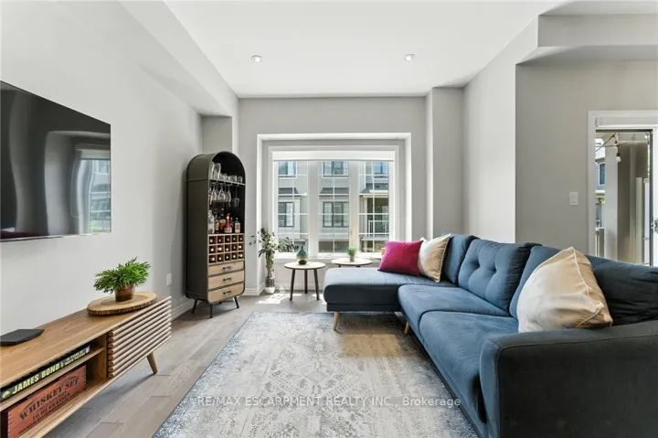 +"PublicRemarks": "Welcome to this bright and spacious 2-bedroom, 2-bathroom townhome nestled in a quiet and desirable Ancaster neighbourhood. Designed with both comfort and functionality in mind, this home won't disappoint! The main floor features a versatile multi purpose den, perfect for a home office, workout area, or cozy retreat, along with a large closet for ample storage. Upstairs, discover a stunning open-concept living space bathed in natural light from expansive windows and patio doors leading to a Juliet balcony. Entertain with ease in the upgraded kitchen, complete with stainless steel appliances, quartz countertops, pot lights, a breakfast bar that comfortably seats four, and a seamless flow into the dining area. The living room is equally inviting, featuring wide-plank hardwood floors and brilliant natural light by day, transitioning to warm, ambient lighting at night. The third floor offers an upgraded primary bedroom with a generous walk-in closet and a large window that fills the space with light. A spacious second bedroom also features a walk-in closet, offering plenty of room for guests, family, or additional office space. Convenient bedroom-level laundry adds modern practicality, while the main bathroom impresses with a double vanity and a sleek glass-enclosed shower. Ideally located just minutes from the vibrant Meadowlands shopping and dining district, highway access, and scenic nature trails, ensuring the perfect balance of urban convenience and peaceful surroundings."