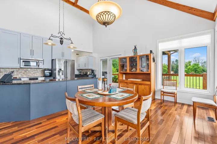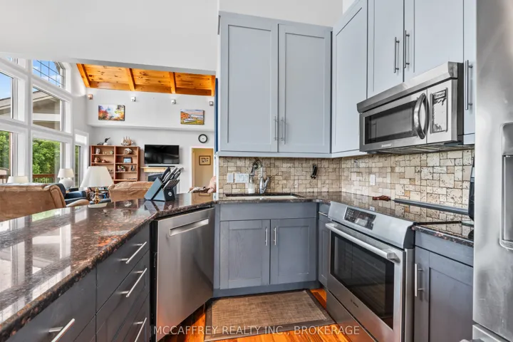 +"PublicRemarks": "Welcome to your dream home on the shores of Hay Bay! This custom-built two-story masterpiece, constructed in 2012, blends luxury, comfort, and scenic beauty. Set on a 1.72-acre lot with 202 ft of waterfront, it offers unparalleled living. As you arrive, a double wide paved driveway leads to an attached 2-car garage and a distinctive detached 40' x 58' garage, complete with hydro and oversized doors (12'x14' & 12'x12'), ideal for boats, RVs, or a workshop. Inside, the main level impresses with 28 ft high cathedral ceilings adorned with BC Fir wood beams. Expansive windows illuminate interiors and offer picturesque views of the landscaped backyard and sparkling waters. This level includes a cozy living room with a gas fireplace, an office/den, and a gourmet kitchen with granite countertops, oak cabinetry, and a breakfast bar. The dining room and easy deck access enhance indoor-outdoor living, as well as entrances from the laundry room, and connections to the garage. Two spacious bedrooms, one with deck access, plus a 3 pc and a 4 pc bath, complete this level. Ascend the beautiful wooden staircase to discover the private sanctuary of the Primary suite. Here, you'll find a spacious bedroom complemented by two walk-in closets and a 4 pc ensuite, providing the ultimate retreat. The finished lower level enhances the home's entertainment and storage capabilities. The rec room features a wet bar, 2 pc bath, cold cellar, substantial storage room, and a utility room. Additionally, a semi-finished bedroom with walk-out offers flexibility for your needs. The outdoor space is nothing short of spectacular, with meticulously designed flower gardens and a 10'x24' floating dock invites you to embrace the waterfront lifestyle. Located just minutes from downtown Napanee, this home provides the perfect combination of convenient access to amenities and the privacy and tranquility of waterfront living."