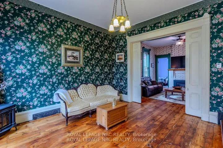 +"PublicRemarks": "Located in the charming village of Ridgeway, 348 Ridge Road North offers a rare opportunity to own a historic gem. Built in the 1880s, this Second Empire-style home features a striking mansard roof and decorative dormers, blending timeless architecture with modern comfort. With over 2,800 square feet, the home offers six bedrooms and 2.5 bathrooms, including a main-floor primary bedroom and an updated main-floor bathroom with custom shower. The west-facing porch is the perfect place to relax and take in beautiful sunset views.Inside, original character details are thoughtfully paired with modern updates. The main floor features two parlours, a formal dining room, and a secondary dining area, ideal for everyday living or entertaining. High ceilings, large windows, original wood staircases, detailed trim, and two gas fireplaces-one with its original mantle-enhance the home's historic appeal. The renovated kitchen includes custom cabinetry, quartz countertops, and a copper sink, while central air ensures year-round comfort. Upstairs, five additional bedrooms and another 1.5-bath layout provide flexible space for family, guests, or a home office. Fresh paint and restored floors brighten many rooms throughout. Outside, a private rear deck, garden, and orchard create a welcoming space for entertaining, complemented by a workshop and ample storage. Recent updates include a concrete driveway, natural gas generator, and metal roof. Buyers are encouraged to verify permitted uses and zoning. Located in walkable downtown Ridgeway, this home is close to shops, dining, and community events, with the shores of Lake Erie just a short drive away-offering the perfect blend of small-town charm and lakeside living."