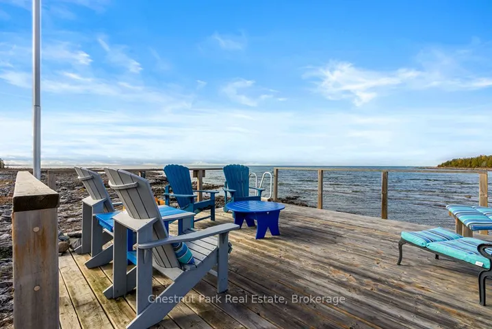 +"PublicRemarks": "Welcome to this Quality engineered waterfront home set along the stunning shores of Lake Huron on the beautiful Bruce Peninsula. Meticulously maintained and thoughtfully designed, this four bedroom, three bathroom residence offers year round comfort, space, and timeless appeal. Located just twenty minutes from Tobermory village and minutes to the white sand beaches of Singing Sands, the property blends privacy, convenience, and unforgettable natural beauty. The heart of the home is the impressive great room, where vaulted ceilings and a wall of windows frame sensational, ever changing lake views. The spacious, light filled kitchen provides ample workspace and flows seamlessly to the upper deck, ideal for outdoor dining and entertaining. The primary bedroom is a peaceful retreat featuring a walk in closet, private ensuite, and direct access to the waterside deck. Main floor laundry adds everyday ease and functionality. The walkout lower level expands the living space with a comfortable family room warmed by a modern propane fireplace, perfect for relaxing after a day on the water. A large storage and mechanical room offers excellent utility and organization. Outdoors, 105 feet of Lake Huron frontage invites you to enjoy westerly exposure and breathtaking sunsets. A wooden boardwalk leads to a massive lakeside deck, complemented by a flagstone patio area for gatherings. The detached garage includes recreational space, while a greenhouse, garden shed, and ample parking complete this exceptional lakeside offering. This remarkable home is ideal as a full time residence, seasonal retreat, or legacy waterfront investment, offering comfort, quality craftsmanship, and the unmatched tranquility of Lake Huron living year round."