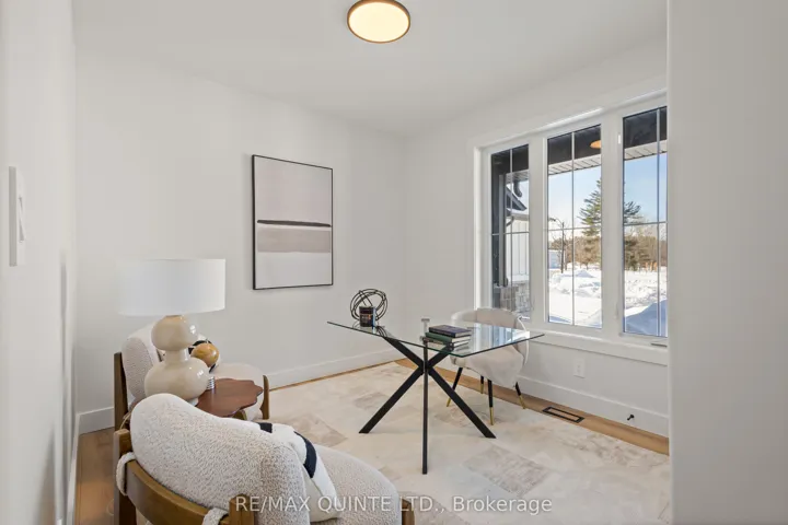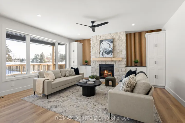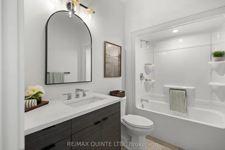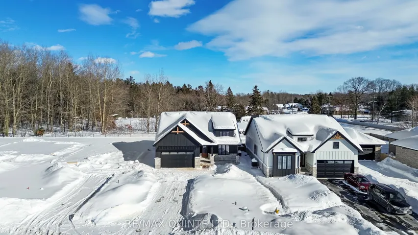 +"PublicRemarks": "Located in Woodland Heights, this 2-bedroom, 2-bath Craftsman-style bungalow is engineered for a simplified, worry-free lifestyle. Situated on full municipal services, the home features a strategically designed open-concept living area. The space is anchored by an integrated gas fireplace featuring a stone surround, fluted wood detailing, and custom built-in cabinetry. This area flows directly into the kitchen and dining zones-finished with precision cabinetry and quartz surfaces-with a walk-out to the covered deck for an optimized indoor-outdoor living experience. The primary suite includes a practically designed ensuite with a double vanity and a custom-tiled shower. A private second bedroom, 4 pc bathroom and a large mudroom/laundry with access to an insulated double garage complete the main level. The full unfinished basement is pre-plumbed and wired, allowing for a seamless future expansion of a 3rd bedroom and bath. Delivery is completely turn-key, including a paved driveway, sodded lawn, and high-efficiency HVAC systems. Ideally situated for professionals or downsizers requiring proximity to the 401 and Prince Edward County."
