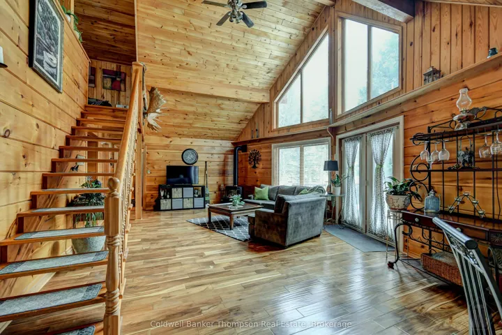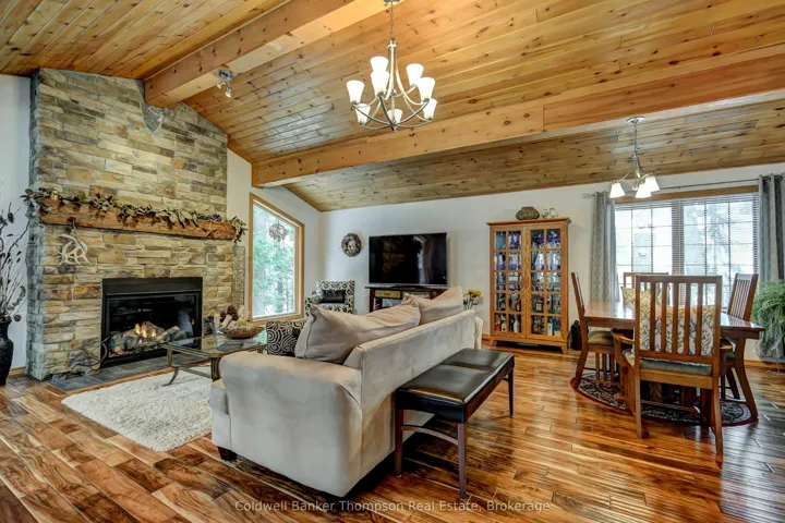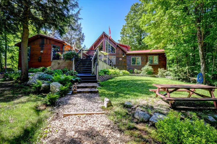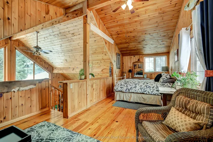+"PublicRemarks": "This Point-of-Land is just over 2 acres in size and has 209 feet of water frontage, providing excellent privacy on beautiful Deer Lake. Three bedroom, year round home with detached 24 X 28 garage. This home is for those that love the warmth of wood finishings; there is teak flooring, pine walls and Douglas fir cathedral ceiling. The kitchen has plenty of cupboards, granite countertops and comes with the appliances. The living room has cathedral ceiling, propane fired, freestanding fireplace and view towards the lake. Main bedroom has a walkin' closet and ensuite bathroom with jet tub and heated floor. One level living here with 3pc bathroom, 2nd bedroom and laundry, also on the main floor. The family room boasts a floor to ceiling fireplace and this room can accommodate nicely for gatherings of family and friends with its direct access to the deck. The loft partially looks over the living room and acts as both 3rd bedroom on one side and sitting area on the other. Just outside the screened in porch is a patio with view of both vegetable and flower gardens. The home was built in 2000, it has a 16k W on-demand generator, domestic water is from a drilled well and connected to a septic system. The two car garage has accommodations above and a carport for extra covered storage. Other outbuildings include: a 8 X 8 sauna and 13 X 20 driveshed. All buildings have matching metal roof. This property is in the unincorporated/unorganized Township of Lount with year round road access. OFSC snowmobile trail C105D runs the length of Deer Lake, providing excellent access to the local trail system. Deer Lake is located north of Hwy 124 and west of Hwy 11 and the Villages of Sundridge and South River."