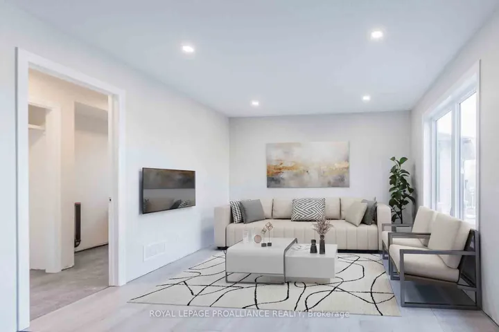 +"PublicRemarks": "Brand new home! This raised bungalow offers over 1800 Sq Feet Of Finished Space. Featuring 3 Bedrooms plus a flex room, 2 Baths, vaulted ceiling, ceramic and laminate floors, deck, double car garage. Primary suite has Ensuite Bath With Walk In Closet. Kitchen with island, and pantry bank. Above grade laundry room, Forced Air Gas, Central Air, Air Exchanger 7 Year Warranty Plus Lots More. Located In Quiet Village Of Frankford You Can Walk To The Trent River And Hike On Miles Of Walking Trails But Are Still Only 20 Mins Or Less To Belleville/401/CFB Trenton/Walmart/Golf Courses And Beach Access."