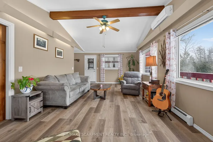 +"PublicRemarks": "Envision life in Norfolk County - Ontario's Garden County - 10 mins south of Simcoe's amenities - 15 min drive to Port Dover's attractions - in-route to popular destination villages & towns dotting Lake Erie's Golden South Coast. Turn your vision to reality as you discover this well maintained, uniquely designed chalet style home oozing w/country charm positioned majestically on 0.56ac lushly landscaped lot nestling up to towering pines & hardwoods. Enjoys 63.78ft of frontage on Old Brock Rd (known as Vittoria Rd) & Mill Pond Rd - lightly travelled road ideal for walking, ATVing or snowmobiling - loaded w/nature trails dead ending at Young's Creek. Recycled asphalt circular driveway extends past home & det. garage continuing to 2nd entrance off Mill Pond Rd. Embrace outdoor natural beauty in abundance from lower 12x20 freshly stained deck & similar sized upper deck boasting screened-in sun room accessing 2nd level living area introducing 933sf of freshly redecorated, classic décor highlighted w/impressive great room ftrs vaulted ceilings, newer low maintenance flooring (thru-out main floor), ductless heat/cool HVAC & 5 oversized windows letting the "sun shine in". Leads to galley kitchen sporting wood cabinetry, adjacent dining room & stylish updated 3pc bath culminating w/spacious primary bedroom. Convenient staircase descends to 649sf finished grade level incs roomy guest bedroom, rustic family room/poss. 3rd bedroom enhanced w/barn board wainscot, 2pc bath, large laundry room, storage/utility room & walk-out to attached 284sf carport. Mechanics or Hobbyists will appreciate 22x30 det. garage/shop incs insulated front bay, sizeable 2nd bay, conc. flooring, hydro, 2 roll-up doors & roof-2025. Extras-"Navien" n/g hot water boiler HVAC, metal roof-2020, vinyl windows, n/g stand-by generator, 2 garden sheds, excellent drilled well & septic. (hot tub negotiable). Experience a slice of Paradise - with Spring nearing - make that LIFE-STYLE change you have "DREAMT" about."