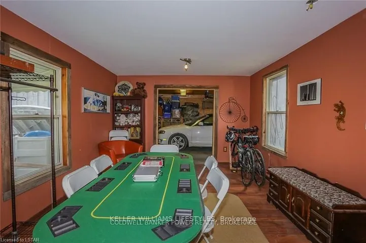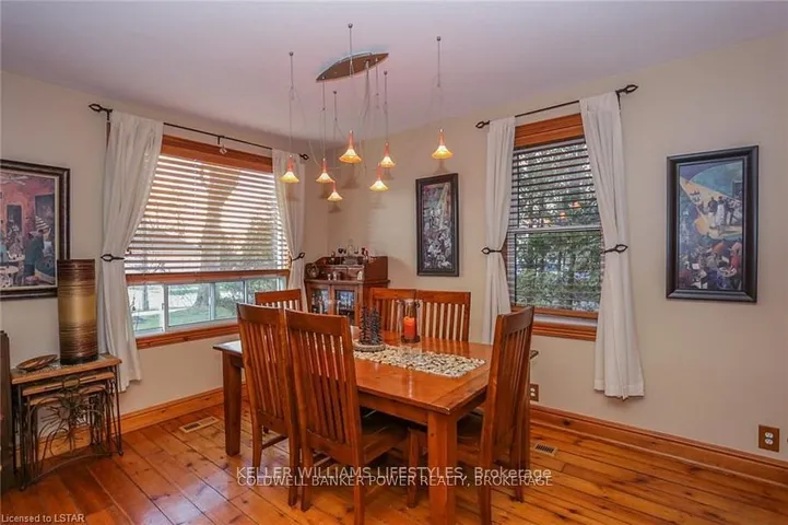 +"PublicRemarks": "Looking for a place where life slows down and memories speed up? Welcome to your everyday getaway. This charming country retreat sits on 2/3 of an acre just 15 minutes northwest of London and is the perfect blend of comfort, character, and outdoor living.Inside, you'll find warm wood tones, beautiful Mexican Saltillo tile, and soaring cathedral ceilings that give the home a cozy, cottage feel with plenty of space to gather. The family room, with its pine cathedral ceiling and gas fireplace stove, overlooks the backyard and is the kind of space you'll never want to leave. A huge front great room, updated kitchen, and spacious main floor laundry/mudroom make everyday living easy.Step outside and this is where the magic really happens, fully fenced, landscaped yard backing onto farmland for ultimate privacy. Host friends and family on the large deck with lighting and waterfall, relax in the 8-person hot tub, enjoy evenings around the fire, rinse off in the private outdoor shower, or hang out under the tiki hut. It's built for entertaining and unwinding.Updates include furnace and central air (2017), updated electrical panel, shingles (2010), upgraded eavestroughs, central vac in house and garage, and more. Excellent neighbours and a fantastic workshop/garage space (approx. 30' x 12.5' & 20.5' x 12') for hobbies, storage, or projects.This isn't just a home, it's where weekends happen... every single day. Don't miss it."