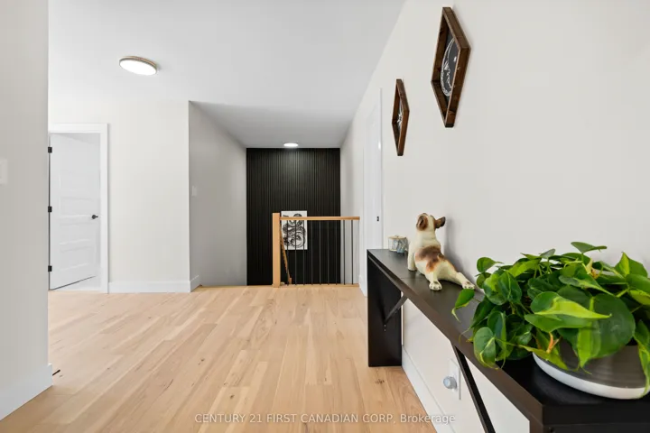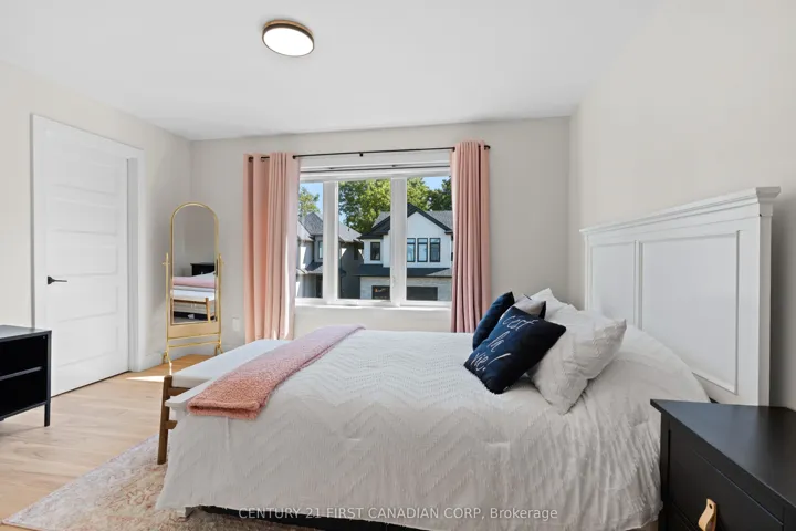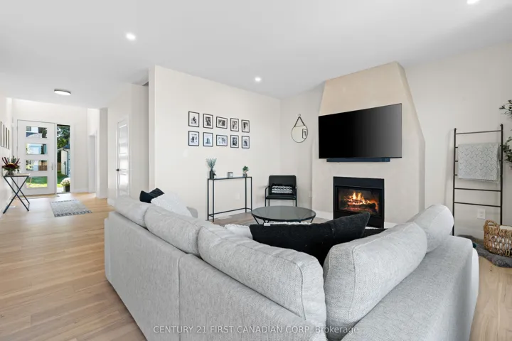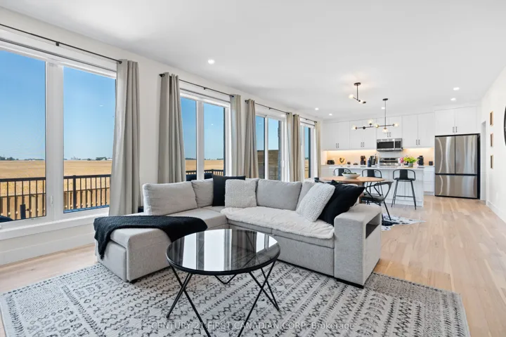 +"PublicRemarks": "Luxury Living Meets Golf Course Serenity. This show-stopping bungalow condo redefines turnkey living, offering a sophisticated retreat backing directly onto the prestigious Caradoc Sands Golf Course. From the moment you arrive, the open-concept layout impresses with soaring ceilings, rich hardwood flooring, and a stunning solid oak staircase. The chef's dream kitchen is the heart of the home, featuring professional-grade stainless appliances, a double gas stove, granite countertops, and a massive waterfall island designed for hosting. Oversized custom glass French doors transition seamlessly from the kitchen to a covered deck, where you can enjoy peaceful water views and lush greens. The main level offers a serene primary suite with a private ensuite and walk-in closet, plus a versatile second bedroom/office and convenient main-floor laundry. The fully finished lower level provides incredible versatility with a massive recreation room, two additional bedrooms, a library or den, and a stylish 3-piece bath. With a rare walk-up to the garage and rough-ins for a second kitchen, this space is perfectly suited for an in-law suite, multi-generational living, or an ultimate guest retreat. Experience a low-maintenance lifestyle with fees of only $79/month in a community just minutes from Strathroy's top-tier amenities. Freshly painted and move-in ready-this isn't just a home; it's an upgrade to your lifestyle."