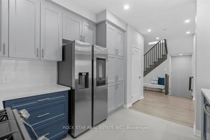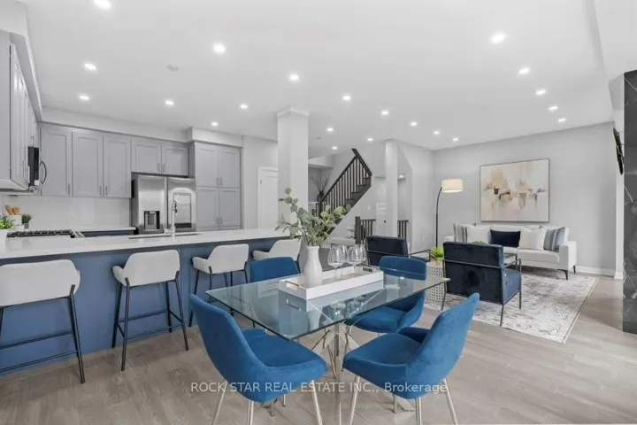 +"PublicRemarks": "Fabulous end-unit townhome in a desirable community, offering a bright, open-concept living and dining area. Spacious kitchen with ample cabinetry, centre island with breakfast bar, pantry, stainless steel appliances, and updated backsplash. Hardwood floors throughout the main level with walk-out to patio and mature backyard.Second floor features three generously sized bedrooms with large windows. Primary bedroom accommodates a king-size bed and includes a walk-in closet with organizer and 4-piece ensuite. Finished basement provides additional living space with laminate flooring and adjacent laundry area with storage.Extras: Double front doors (2020), sliding glass door (2020), shingles (2013), garage door (2012), Moffat fridge & GE dishwasher (2020), Whirlpool stove (2024), Samsung washer & dryer (2017)."