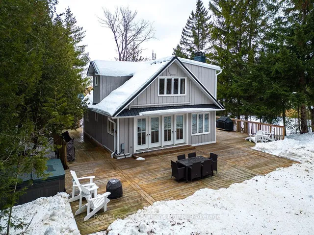 +"PublicRemarks": "Minutes from the area's private ski clubs and steps to the beach, this 4 season, 4 +1 bedroom chalet offers the perfect location for year-round outdoor adventures. Nestled on a private lot with a long driveway, the home is surrounded by mature trees and lush greenery, creating a serene escape.Inside, wood floors flow throughout, and the cozy living space boasts built-ins, a stone-surround wood stove, and a walkout to the back deck. The eat-in kitchen includes plenty of cupboard space, a peninsula and a coffee bar, perfect for après-ski gatherings. A good size guest bedroom and 3pc bathroom complete the main level.On the upper level you'll find two guest bedrooms and a large primary bedroom, all sharing a 4-pc bath.Enter through the lower level, where a spacious mudroom and ski room provide ample storage for gear. The large rec room serves as an additional bedroom; a great space for hosting guests!Additional highlights include a large wraparound deck, hot tub and wood burning sauna, ideal for outdoor relaxation and entertaining.This property features a separate, rare 650sqft garage, offering potential to transform this unused space into a laneway home. Secondary suites can be a source of additional income, provide more space for guests and support multigenerational living.3 minutes to Georgian Peaks Ski Club and close proximity to downtown Thornbury, known for its award-winning dining, boutiques, and coffee shops. Just 15 minutes from Collingwood and steps from beach access, this home offers comfort, adventure, and convenience!"