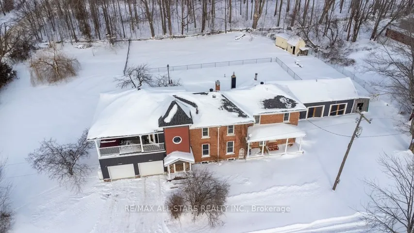 +"PublicRemarks": "Country charm meets modern luxury in this exceptional brick century farmhouse, seamlessly blended with a stunning 4-year-old addition, offering over 3,500 sq ft of living space. The original farmhouse features a formal living room and dining room, while the expansive eat-in kitchen showcases a large island, new cabinetry with abundant storage, and a walk-in pantry. The main-floor family room impresses with cathedral ceilings, a wood-burning fireplace, and a walkout to a beautifully fenced in-ground pool-perfect for entertaining. A fully refinished century staircase leads to the second level, featuring four generous bedrooms plus a spectacular 22' x 13' primary suite complete with a walk-in closet, full ensuite, and private access to an upper-level balcony with hot tub and breathtaking countryside views. Additional second-floor highlights include a dedicated office, 4-piece bath, and convenient laundry. The property offers exceptional garage space with an oversized 2-car garage providing ample storage and direct access to a large mudroom, plus an additional attached 3-car garage with workshop. The property is serviced by a new septic system (2021), drilled well, 200-amp electrical panel (2022), and two propane furnaces with separate thermostats. All of this is set on a meticulously manicured 1.1-acre lot with spectacular panoramic country views. Quick access to Hwy 115 and 407 for easy commute to the GTA."
