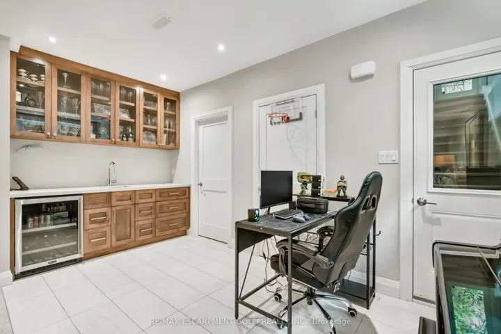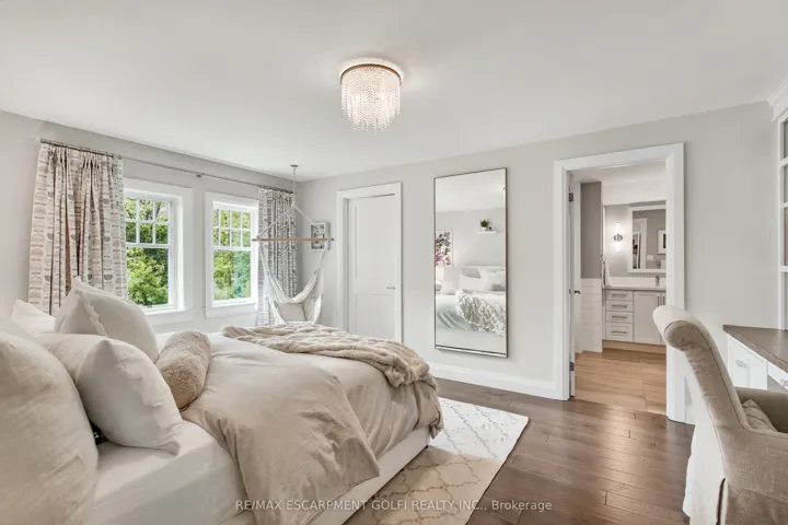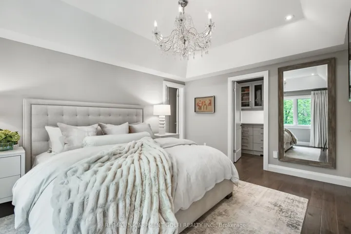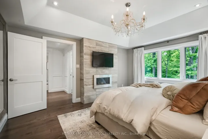 +"PublicRemarks": "Welcome to unparalleled luxury and craftsmanship. Nestled in one of the city's most prestigious enclaves and backing onto the Royal Botanical Gardens Forest, this exceptional 5-bedroom, 5-bathroom residence offers over 4,100 sqft of refined living where nature meets timeless design. Thoughtfully curated throughout, the home features hand-selected finishes, custom millwork and premium Kolbe windows and doors providing energy efficiency and beautiful forest views. The main level showcases a gourmet chef's kitchen with Wolf, Sub-Zero and Miele appliances, generous prep space, a large island with seating and an open layout flowing seamlessly into the living and dining areas framed by serene forest views. Also on the main floor is an executive office with a separate entrance to a covered porch and a spacious mudroom with heated floors, custom cabinetry and direct access from the tandem double-car garage. Upstairs, the tranquil primary suite features a gas fireplace, spa-inspired ensuite with heated floors and a walk-in closet. A second-floor laundry and heated flooring in every bathroom add everyday comfort. The lower level offers a guest suite, gym, rec/media room, kitchenette, rough-in for laundry and a separate entrance, all with heated flooring. Professionally landscaped gardens and multiple seating areas create beautiful outdoor spaces for relaxing or entertaining against the peaceful forest backdrop."