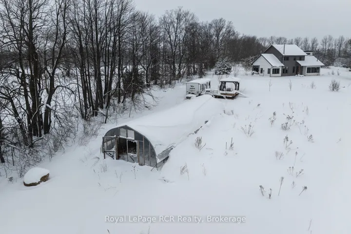 +"PublicRemarks": "Custom-built (2015) architect designed home with accessory apartment set on 151 picturesque acres. The property features a large swimming pond, Hamilton Creek, and sweeping panoramic views over rolling hills. A long, scenic, tree-lined laneway leads to an open field showcasing the residence, a 1,200 sq. ft. double-walled greenhouse ( built in 2023 with automatic vents), outdoor sauna and a charming guest area complete with a newer Jayco trailer and deck.The main home offers passive solar design with enhanced insulation, in-floor heating with separate loops, 12' ceilings and an open-concept design. The main house features a great room with kitchen/dining/living room including cookstove, large island, 2 piece bathroom and lots of windows for the views. The upstairs includes three bedrooms, office space in hallway and a full bathroom. The accessory apartment features an open living room and kitchen with large island and woodstove, a bathroom with walk-in shower, and a loft-style bedroom. Laundry is a shared space between both units, making this an ideal setup for rental income or multi-generational living. The attached insulated garage has entry doors on both ends and a Tesla charger. The covered porch offers additional versatility-perfect for a hot tub or future enclosed living space as it has an in-floor heat loop and insulated roof . Metal roof on main house and flat roof on the garage. The land is a beautiful mix of forest, pasture, workable acreage, large pond, and creek, providing privacy, recreation, and stunning natural surroundings. Approximately 40 acres workable (possibly more), of which approx. 20 have been recently amended, renovated and re-seeded to hay/pasture. Property taxes are kept lower through forest and conservation land reductions."