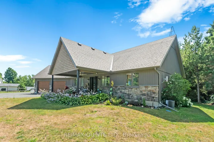 +"PublicRemarks": "Escape to 12 private acres just minutes from downtown Brighton. This custom-quality 2+2 bedroom, 3 bathroom bungalow offers a rare blend of space, privacy, and convenience, delivering peaceful country living without feeling remote. Surrounded by open fields and mature trees, the property is ideal for those seeking room to breathe, one-level living, and easy access to town amenities. From the moment you arrive, you will notice the unique handcrafted flower art installations and beautifully landscaped front yard. A covered composite porch invites quiet morning coffee, while the south-facing deck and patio are perfect for entertaining or soaking up the sun. Inside, the open-concept main floor is designed with style and function in mind. Features include engineered hardwood flooring, vaulted ceilings, pot lighting, and custom living room built-ins. The chef-inspired kitchen is the heart of the home, complete with Quartz Calacatta Idillio countertops, farmhouse sink, kettle faucet, soft-close cabinetry with hidden drawers, stainless steel LG fridge with internal ice maker, induction stove, range hood, and built-in dishwasher. A mudroom and laundry area with Maytag washer and dryer keeps daily life organized. The spacious primary suite offers a walk-in closet and a luxurious 5pc ensuite with double sinks, soaker tub, and walk-in glass shower. The fully finished basement adds 2 additional bedrooms and flexible space for a family room, home gym, or hobby area. Additional highlights include an attached 2-car garage with inside entry to both levels, and HRV system, owned water softener, and owned hot water tank. Located beside the Brighton Speedway, the property remains quiet and private throughout the week, with a bit of lively community energy on select race nights a few months of the year. For the right buyer, this is an opportunity to own substantial acreage, a quality bungalow, and a flexible lifestyle setting in one of Brighton's most accessible rural locations."