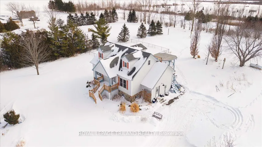 +"PublicRemarks": "Country Comfort Just Minutes from Town Enjoy the best of country living with the convenience of being just 2 minutes from the 402 in this welcoming 1.5-storey home, offering 3 or 4 bedrooms, 3 bathrooms, and approximately 2118 sq ft of interior living space. Move-in ready and well cared for.Set on 1.392 acres on a paved road, the home backs onto open land and offers sweeping panoramic views from the front and back. A beautiful front pond with waterfall and a charming front porch create a peaceful first impression as you arrive. Inside, the main floor features a large, bright kitchen that opens to the dining area, with direct access to the 2-tiered deck-ideal for barbecues, entertaining, or simply relaxing and enjoying the view. The main floor primary bedroom adds everyday convenience, and the main-level laundry is a practical bonus. Throughout the upper levels, hardwood and tile flooring provide durable, easy-care finishes, and large windows bring in tons of natural light and capture the country scenery. Upstairs you'll find additional bedrooms, offering comfortable space for family, guests, or a home office. The finished basement provides great extra living area, with a walk-up to the yard and potential to create another bedroom, hobby space, or gym room to suit your needs. Outdoors, a large fenced area offers a safe play space for kids and pets, while the surrounding open land and great views make the yard feel expansive and private. The 2-tiered deck extends your living space outdoors, perfect for enjoying sunrise coffee or sunset views. Additional conveniences include multiple exterior entry options for easy access and day-to-day practicality. If you're looking for a move-in ready country property with solid features, beautiful views, and room to personalize over time, this home is a must-see."