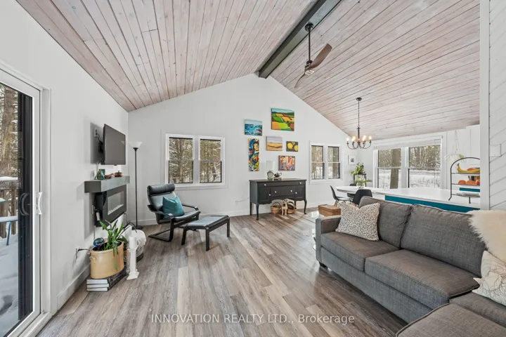 +"PublicRemarks": "Welcome home to this charming Viceroy style 3-bedroom, 2-bath property set on a beautifully treed 0.52-acre lot with a fenced yard, no rear neighbours offering privacy, warmth, and an inviting connection to nature. The open-concept living and dining area features striking wood cathedral ceilings, a cozy electric fireplace and a patio door leading to a spacious deck overlooking the peaceful backyard-an ideal place to relax and enjoy the outdoors. Numerous updates enhance comfort including a spacious front deck, new flooring throughout the main level, all windows and doors replaced, a fully renovated main floor bathroom, and updated Maibec siding and eavestroughs. The main level offers two comfortable sunlit bedrooms and a beautifully finished family bathroom, while the bright walk-out lower level adds excellent versatility with a third bedroom, a large family room room with a Pacific Energy wood stove with insulated chimney, a 3-piece bath, and a bonus mudroom. A large detached garage provides great storage or workshop potential, completing this well-maintained home. Beyond the property, Fitzroy Harbour delivers an exceptional lifestyle with access to the Ottawa River for boating, canoeing, paddleboarding, and fishing, along with nearby Fitzroy Provincial Park offering scenic trails and a sandy beach. Year-round recreation includes cross-country skiing, snowmobiling, golfing, baseball, soccer, and quick access to the Cavanagh Sensplex for hockey. With Arnprior just 15 minutes away and Kanata within 30 minutes, this location offers the perfect blend of tranquil living and convenient access to urban amenities, making it a rare opportunity in a welcoming and active community."
