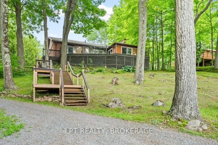 +"PublicRemarks": "Welcome to your lakeside retreat on Bobs Lake! Impeccably updated 3 + 2-bedroom, 2 + 1-bathroom bungalow nestled on private sandy shoreline in Tichborne. From the moment you arrive, the landscaped grounds and striking metal roof set the tone for refined yet relaxed living.Step inside to discover a spacious interior finished with hardwood floors and oversized windows framing water views. The chefs kitchen is a showpiece, featuring granite countertops, stainless steel appliances and a convenient breakfast island. Adjacent, the sunlit dining area opens through sliding glass to a generous deck with clear-pane railing ideal for entertaining.Retreat to the primary suite, complete with ensuite bath and lake vistas. Two additional main-level bedrooms share a modern full bath, while a lower-level wing offers two more bedrooms, a full bath and versatile family room perfect for guests or home office.Outside, the fun continues at the waters edge: new stairs lead to your private sand beach, where a custom dock and powered gazebo (complete with satellite TV and hydro) await summer gatherings. A private road down to the lake ensures easy access. Back at the home, a heated two-car garage, generator plug at the hydro meter. With every detail thoughtfully curated from the granite counters to the gazebo amenities this bungalow embodies vacation at home. Embrace lakeside living in style. Schedule your private tour today."