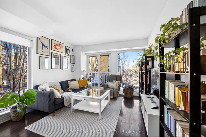 +"PublicRemarks": "Welcome to this spacious and sun-filled one-bedroom, one-bath condominium offering an impressive 876 square feet of thoughtfully designed living space, complete with parking and a storage locker. Offered at **under $665 per square foot - more than 5% below the buildings recent past sales average** this home represents outstanding value in one of Ottawa's most exciting and rapidly evolving neighbourhoods. Engineered wood flooring flows throughout the open-concept layout, complementing the modern aesthetic and enhancing the sense of scale. Expansive floor-to-ceiling windows flood the space with natural light, creating an airy, welcoming atmosphere rarely found in one-bedroom condos. The generous living and dining area easily accommodates full-size furniture, making it ideal for both everyday living and entertaining large gatherings. The kitchen is a standout feature, equipped with new appliances, granite countertops, and a rare double-oven range, offering both style and functionality. The entrance area offers an abundance of storage and enough space for a home office/den. The bathroom features modern fixtures and marble countertops, providing a clean, contemporary feel. The well-proportioned bedroom offers excellent closet space and room for a king-size bed. Located in Le Breton Flats, the future home of the Ottawa Senators, this condo places you at the centre of one of the city's most transformative districts. Enjoy walking access to the LRT station, Canadian War Museum, downtown offices, and a wide variety of shops and restaurants. The Ottawa River and scenic pathways are just steps away, perfect for walking, cycling, and waterfront living. Building amenities include an indoor pool, fitness centre, and a rooftop patio with BBQs, perfect for entertaining or enjoying summer evenings, including views of Ottawa Bluesfest. A rare opportunity to own a generously sized condo at outstanding value in a landmark location with strong future potential."