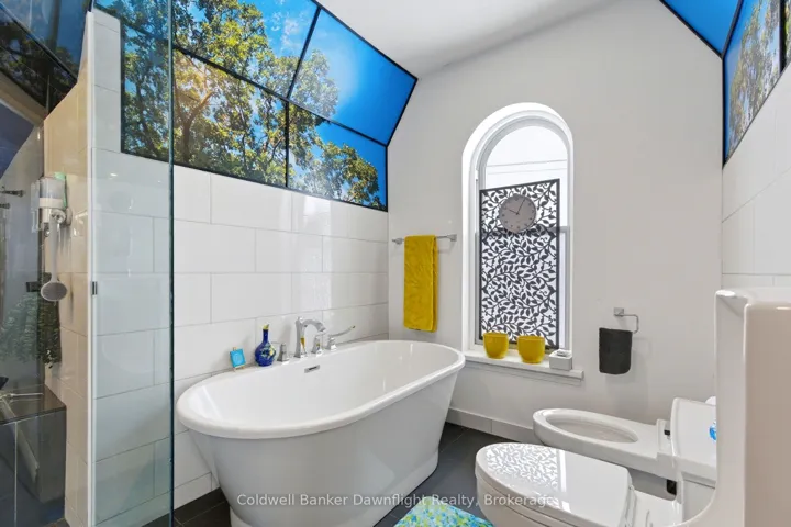 +"PublicRemarks": "Welcome to 425 William Street in Exeter, a truly stunning yellow brick century home offering exceptional curb appeal and the perfect blend of historic charm and modern luxury. This thoughtfully updated 2+1 bedroom, 2.5 bathroom residence boasts an extensive list of improvements from roof to foundation, providing peace of mind for years to come.The upper-level primary suite is nothing short of breathtaking, featuring a walk-through powder room/closet leading to a spa-inspired shower room with full glassed in tile shower, deep soaker tub, and luxury additions including a bidet, heated towel warmer, and urinal. Natural light pours through the space, highlighting the picturesque mural and creating a serene retreat. A second upper-level bathroom showcases custom artistic ceramic tile with unique style and craftsmanship.The main floor offers a welcoming layout with a centrally located kitchen complete with high ceilings, stainless steel appliances, and a large window flooding the space with natural light. A convenient main-floor laundry and 2-piece bath add everyday functionality. At the rear of the home, the sunroom impresses with wood beams, a stone fireplace, and a wall of windows overlooking the private backyard oasis.Downstairs, the partially finished basement provides additional living space with a bedroom currently used as a studio and a recreation area. Outside, enjoy summer days in the 24ft above-ground pool surrounded by a large wood deck, new concrete patio, firepit, hydrangea gardens, and cedar trees. A steel gazebo with electric heat offers the perfect spot for cool evenings. Completing the package is a brand-new attached garage with mudroom and interior access. This is a rare opportunity to own a truly one-of-a-kind home."
