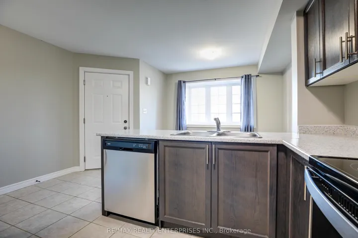 +"PublicRemarks": "Welcome to this freshly painted and professionally cleaned 2-Bedroom stacked townhouse with over 1300sqft of living space in Victoria North! Walking in, the dining area features a large inset window, a functional kitchen with breakfast bar, stainless steel appliances, and an upgraded glass-door corner cabinet. Smooth ceilings and well-maintained laminate flooring on the main level, paired upgraded plush carpeting and smooth ceilings on the lower level, create a warm and welcoming atmosphere throughout. The spacious living area offers double French doors leading to a backyard deck, perfect for outdoor enjoyment, and includes a gas line for a BBQ. The lower level provides ample storage with space under the stairs, a linen closet, and a sizeable cold room. The large primary bedroom features two separate closets and multiple windows allowing natural light to flow in. The second bedroom includes a double-door closet and a window as well. Convenient stackable laundry is located on the lower level. Close to shops, grocery, restaurants, schools, transit, Guelph Lake Conservation, and so much more!"