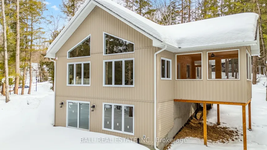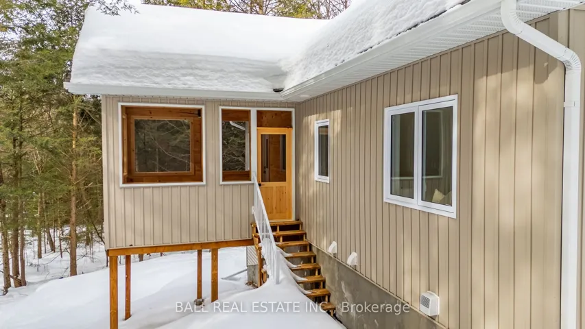 +"PublicRemarks": "Welcome to this thoughtfully designed 2025 custom bungalow, offering approximately 1,200 sq.ft. of well-planned living space and the perfect blend of modern comfort with an in-town rural feel. The main floor features a bright, open-concept living, dining, kitchen area, highlighted by vaulted pine ceilings and abundant natural light. The custom kitchen is finished with quartz countertops and quality cabinetry, flowing seamlessly into the main living space-ideal for everyday living and entertaining. Durable luxury vinyl flooring runs throughout the main level, complemented by spacious bedrooms with large closets. The primary bedroom offers a walk-in closet and a private 4-piece ensuite, while a second 4-piece bathroom and convenient main-floor laundry complete the level. Additional quality finishes include North Star windows, an asphalt shingle roof, and a welcoming front deck. At the rear, enjoy a 12' x 12' pine screened-in room with direct access to the backyard-perfect for relaxing and enjoying the natural surroundings. Full ICF foundation and features a bright walk out basement with oversized windows and a patio door, allowing for excellent future living potential. The basement is partially finished, with electrical completed, partial drywall installed, and rough-in for a third bathroom already in place. Mechanical systems include a propane furnace, owned hot water tank, 200 AMP panel and HRV system. Set on a beautifully treed lot, the property backs onto a natural escarpment, creating a private & peaceful backyard. Located on a municipally maintained road with underground hydro, phone, and internet, and accented by stylish street lanterns, this quiet dead-end cul-de-sac offers minimal traffic and a strong sense of community. All within walking distance to Haliburton Village, surrounded by custom homes, and designed to preserve a true rural atmosphere while still enjoying the convenience of town amenities."