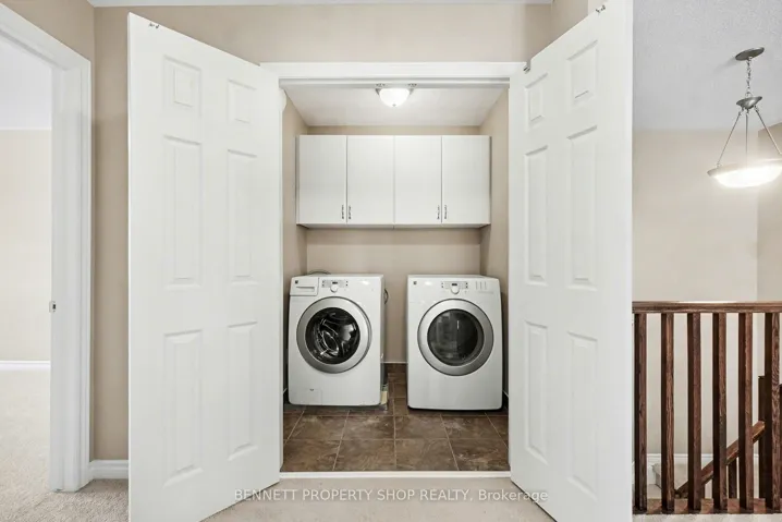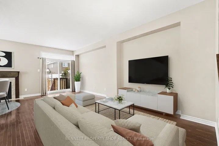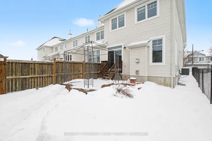 +"PublicRemarks": "Welcome to this beautifully designed Tamarack Huntington model end unit townhome offering 2,121 sq ft of thoughtfully planned living space, including 411 sq ft in the finished lower level. Built as an Energy Star certified home, this property combines efficiency, comfort, and quality construction. The bright open concept main floor features 9 foot ceilings, oak hardwood flooring, and large windows that allow natural light to flow throughout the living and dining areas. The welcoming entrance is finished with ceramic tile, while the kitchen is both stylish and functional, showcasing Muskoka custom crafted cabinetry, ceramic finishes, a walk in pantry, and seamless flow into the main living space. A cozy gas fireplace anchors the room, making it ideal for everyday living and entertaining. The second level offers an oversized primary bedroom complete with a private ensuite, along with two additional generously sized bedrooms and a versatile loft or den that works perfectly as a home office, homework area, or quiet sitting space. Convenient second floor laundry adds to the thoughtful layout. The finished lower level provides additional living space with a spacious recreation room, ideal for movie nights, a play area, or a comfortable retreat, complete with a second fireplace. Outside, the fully fenced backyard offers privacy and functionality, featuring a deck ideal for outdoor dining or relaxing, along with a backyard shed for added storage. Located in the desirable Jackson Trails community of Stittsville North, this home is within walking distance to schools, parks, public transit, shopping, and restaurants, offering an excellent balance of convenience and community. A fantastic opportunity to own a well appointed townhome in a sought after neighbourhood. 24 hours irrevocable on all offers. Some photos are digitally enhanced."