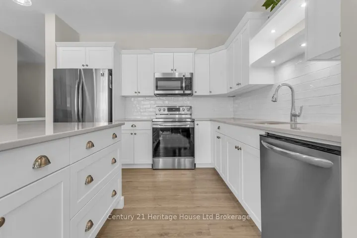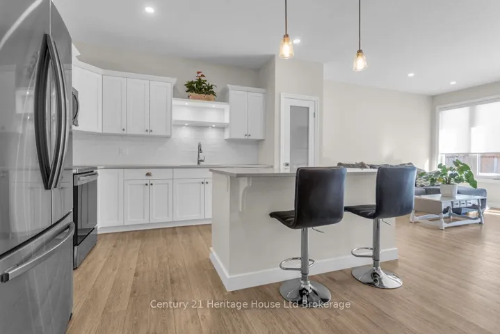 +"PublicRemarks": "A hard-to-find end-unit 4-bedroom (one flexible room on the main level) townhome by Hobin Architecture and Uniform Developments, nestled in the prestigious Richardson Ridge Phase 4 community in Kanata Lakes, surrounded by green space corridors and the Kizell Pond conservation area. Situated on a rare oversized corner lot measuring about 31' wide, this home has no rear easement - offering exceptional backyard privacy that most townhomes cannot match. The landscaped front yard, fully fenced backyard, and side hedges are already in place. Uniform's Carling model offers close to 2,300 sq ft above grade, plus a fully finished basement. The open-concept main floor impresses with hardwood flooring, no visible load-bearing posts or walls, and a bright front-facing flexible room that can serve as a home office, playroom, or guest bedroom. The chef's kitchen features full-height shaker-style cabinetry, upgraded quartz countertops, a Bosch appliance suite including a gas cooktop and flush-mounted double wall oven, a large island with seating, and a charming coffee station. The living room is anchored by a gas fireplace with granite surround and picture-style mantel. The designer oak-and-black-metal staircase is a statement feature. Upstairs, the primary suite (13'4" x 15'0") includes a generous walk-in closet and a heavily upgraded ensuite with oversized tiles, a floating vanity, and quartz countertops. Two additional bedrooms and a full bath complete the second floor, along with conveniently located laundry. The finished basement offers an oversized recreation room (18'7" x 19'9"), a full bath, and a large egress window. Steps to parks, trails, top schools including Earl of March SS, and all amenities Kanata has to offer."
