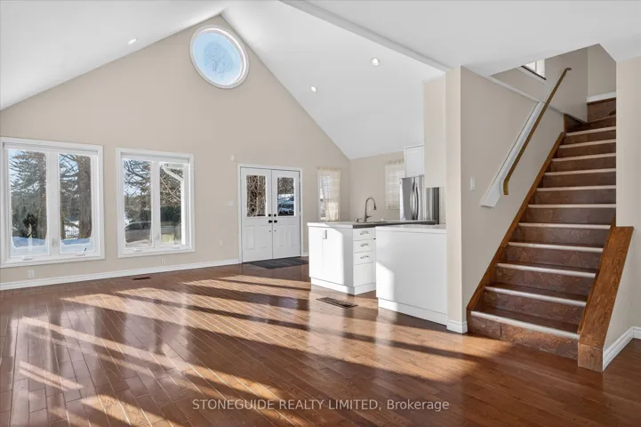 +"PublicRemarks": "Located at the end of a quiet cul-de-sac overlooking the Otonabee River, this exceptional home combines comfort with a truly unique setting. Featuring 3+2 bedrooms and 3 baths, the bright open-concept main floor offers soaring vaulted ceilings and river views. The loft-style primary suite boasts a private ensuite, walk-in closet, and walkout to a balcony overlooking the water. A finished lower level adds two additional bedrooms,full bath, rec room and separate entrance. Enjoy multiple vantage points to watch the boats drift by or to catch the morning sunrise. The bay area that the house overlooks is filled with wildlife activity including swans, ducks and otters. Perfect spot to pop the kayak in the water and explore or to step out and enjoy the walking trail. Ideally located close to schools, the Memorial Centre, farmers market, and so much more."