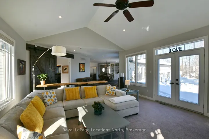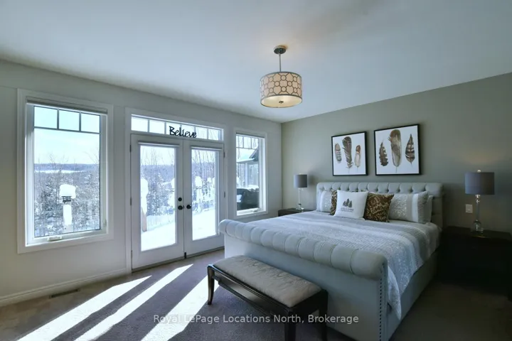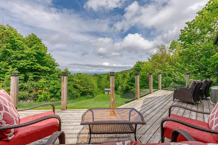 +"PublicRemarks": "Known as the sunshine chalet and the house with the best views in all of Castle Glen! Immerse yourself in the stunning, panoramic views of Osler Bluffs, Niagara Escarpment and Georgian Bay from this one-of-a-kind bungalow. The wrap-around 75-ft deck with glass panels provides unobstructed sights. Every window in this home has a breathtaking look of natural beauty from season to season. Castle Glen is a one-of-a-kind community that sits amidst an outdoor enthusiast's heaven, surrounded by scenic hiking trails with cascading rivers, the Bruce Trail, 3-Stage mountain biking trails, cyclists' routes, snowshoeing and cross-country ski trails. The location of this home offers the perfect balance of nature and convenience with downtown Collingwood and Blue Mountain Village just 10 minutes away. This four bed, 3 bath open-concept home is truly an entertainer's delight throughout and has too many features to include! Main level has a chef's kitchen w/ high-end appliances, dining room designed for gathering, great room anchored by a wood-burning fireplace and vaulted ceilings, master suite in separate wing from guest suite, mudroom and laundry w/ access to a large two-car, insulated garage w/ storage loft for all your outdoor gear. The lower-level walk-out is a man-cave dream w/ a bar to rival any fine pub. Enjoy the wet sauna and hot tub. Even the walk-out level guest bedrooms have a view! This remarkable home has been meticulously cared for and must be seen!"