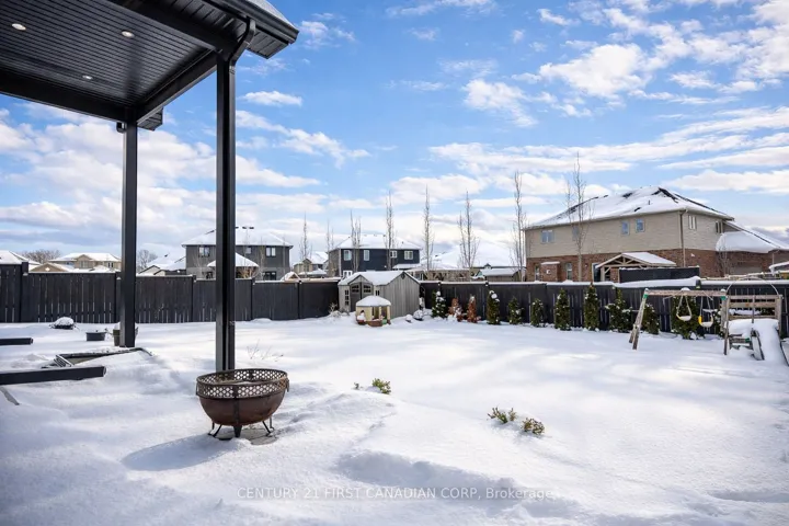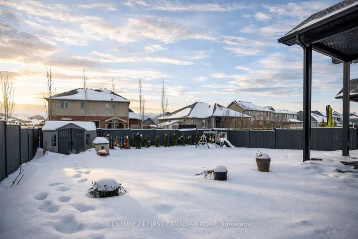 +"PublicRemarks": "Welcome to Your Dream Home in Lucan, Ontario! With parks, schools, and amenities just minutes away, this property offers the ideal lifestyle for families and professionals alike.From the moment you step inside, it's clear this home surpasses any builder base model. The main floor features soaring 10-foot ceilings and elegant 8-foot doors, creating a bright and inviting atmosphere throughout. The front office-with its impressive and grand window offers a serene space drenched in natural light, accented by a coffered ceiling that's mirrored in the formal dining room.The upgraded kitchen is a true showstopper with elongated cabinets, quartz countertops, subway tile backsplash, built-in appliances, an induction cooktop and tasteful accent panels on the island. The butler's pantry-with lovely glass cabinets, quartz counters, and a bar fridge flow seamlessly to the formal dining space.Throughout the main floor, you'll find hardwood and tile flooring, along with a cozy gas fireplace featuring a refined, upgraded trim surround. The hardwood staircase leads to an upper level filled with style and comfort, including a beautiful primary suite complete with a walk-in closet and a luxurious 5-piece ensuite. Three additional bedrooms each feature their own walk-in closets, while the spacious main bathroom impresses with a custom quartz double vanity and an upgraded tiled shower with glass enclosure.The basement offers incredible potential, featuring nearly 9-foot ceilings, oversized windows, and a bathroom rough-in-a perfect blank canvas for creating your dream recreational space.Outside, the attention to detail continues. The fully fenced backyard features stained wood fencing with metal side gates, a covered overhang with a concrete patio that stretches the length of the home and wraps gracefully to the front. The irrigation system ensures your home stands out even in the summer heat. At this price point, you simply couldn't replicate this home today with these upgrades"