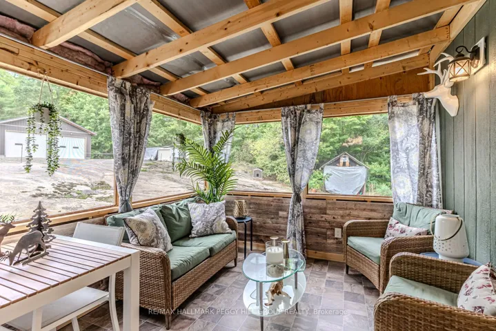 +"PublicRemarks": "FULLY REMODELLED MUSKOKA RETREAT ON 1.76 PRIVATE FORESTED ACRES WITH SOARING CATHEDRAL CEILINGS, A CUSTOM MUSKOKA SUNROOM, & A 30 X 30 FT SHOP WITH DOUBLE BAY DOORS! Tucked away on 1.76 acres of private, forested land, this extraordinary Muskoka retreat combines natural beauty with stunning upgrades and year-round comfort. Located just down the road from Mc Lean Bay and Sopher's Landing Marina, and only 10 minutes to downtown Gravenhurst, you are surrounded by lakes, trails, golf, and natural splendour, yet close to every convenience. Designed for outdoor enjoyment, the home boasts a wrap-around deck, a luxurious newer hot tub with a pergola, a charming 3-season bunky for guests or creative use, and a newly built 30x30 ft shop with double bay doors, ideal for car enthusiasts, hobbyists, or seasonal storage. An oversized driveway provides ample space for vehicles, RVs, boats, and other recreational toys. Inside, the striking open-concept design flows seamlessly through the kitchen, dining and living areas beneath soaring cathedral ceilings, while oversized windows frame serene forest views and flood the home with natural light. The inviting living room features a cozy stone-detailed fireplace, rustic exposed beams, and sliding barn doors leading to a primary suite with a walk-in closet and a spa-like 3-piece ensuite with a deep soaker tub. A custom Muskoka sunroom extends from the primary suite for quiet mornings or evening relaxation. Two additional bedrooms and a 4-piece bath complete the main level, while the walkout basement with a dry bar and electric fireplace provides versatile in-law suite potential or a stylish entertainment space. Completely remodelled with a thoughtfully designed addition, this home is finished with artisanal details, including a hand-milled white ash staircase. A true Muskoka sanctuary, this property offers the privacy, craftsmanship, and lifestyle you've been dreaming of - ready to be enjoyed in every season!"