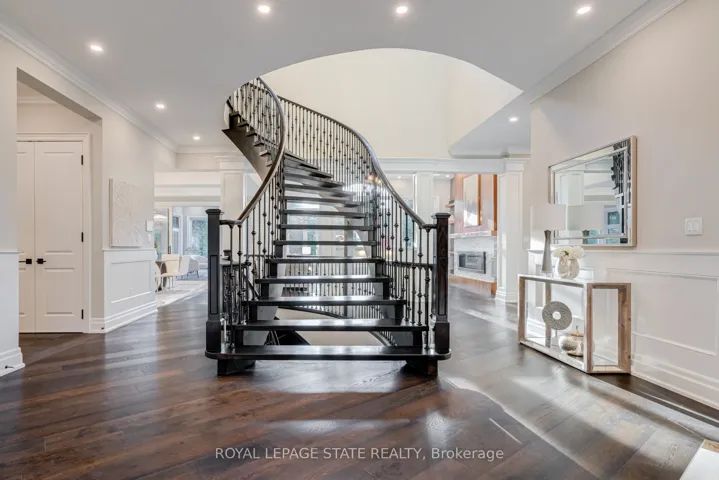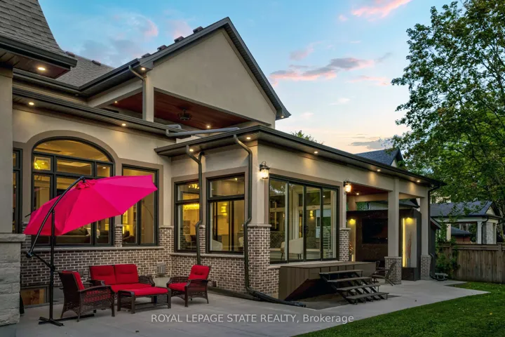 +"PublicRemarks": "This multi-generational luxury dream home blends timeless design with superior craftsmanship, offering over 8,850 sqft. of finished living space with 7 bedrooms and 8 bathrooms on a 135-ft-wide lot in Ancasters prestigious Oakhill neighbourhood. Surrounded by mature trees and estate homes, the property showcases two separate garages, parking for 20+ vehicles, professional landscaping, and a commanding architectural façade. Inside, a 21-ft grand foyer with curved staircase and custom millwork sets an elegant tone, complemented by wide-plank hardwood, porcelain tile, and abundant natural light from oversized windows. The main level offers formal living and dining rooms, a private office, powder room, and one of two primary suites with backyard walk-out. At the heart of the home, a soaring family room with floor-to-ceiling windows connects to a gourmet kitchen featuring top-tier Thermador appliances, a servery, walk-in pantry, and a heated four-season sunroom with in-floor heating. Upstairs are four generous bedrooms, each with its own ensuite and heated floors, plus a convenient laundry room and a spectacular primary retreat with gas fireplace, dressing room, and spa-inspired 6-pc ensuite. A covered terrace with artificial turf extends the living space outdoors. The finished lower level offers incredible versatility for extended family living with a separate entrance, two bedrooms, two bathrooms, recreation room with gas fireplace, kitchenette, and a sound-isolated home theatre room that can be separated from the rest of the basement. The private backyard provides multiple patios under mature trees, with professional renderings available for a future pool, hot tub, and full landscaping. Smart-home features include Control4 automation, security system, 400-amp, dual furnaces & ACs, HRVs, and central vacuum with hide-a-hoses. A rare opportunity to own an Oakhill estate that combines sophistication, space, and modern functionality for todays luxury lifestyle."