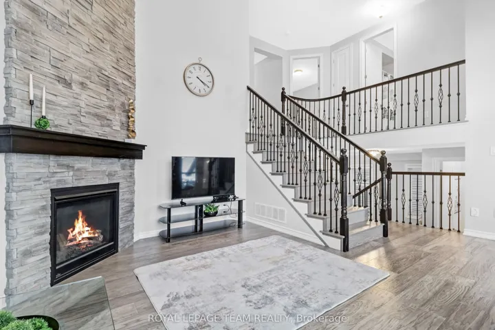 +"PublicRemarks": "Located in the desirable enclave of Half Moon Bay, this prestigious home offers refined luxury and exceptional craftsmanship throughout. The main level features an elegant open-concept layout with a sophisticated living and dining area highlighted by a electric fireplace, flowing seamlessly into a chef-inspired kitchen appointed with custom extended cabinetry, quartz countertops, designer backsplash, and premium stainless steel appliances. The upper-level is truly impressive, featuring a dramatic great room with soaring ceilings, a striking stone-accented gas fireplace, and access to a private balcony-an ideal setting for both relaxation and entertaining. The upper level offers four spacious bedrooms, including a luxurious primary retreat with a spa-like five-piece ensuite, along with an additional full bathroom. Numerous high-end upgrades are showcased throughout, including enhanced lighting, premium finishes, and nine-foot ceilings on both the main and second floors. Ideally located near golf, parks, schools, shopping, and just 20 minutes from downtown Ottawa, this exceptional residence delivers an elevated lifestyle of comfort and elegance."