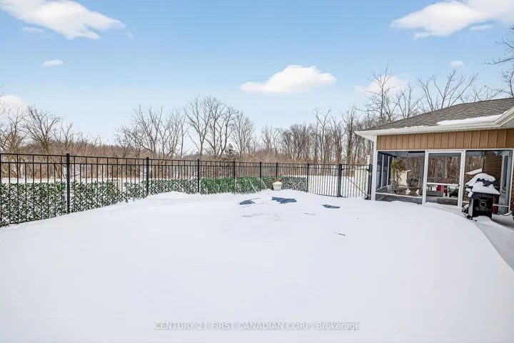 +"PublicRemarks": "HONEY, STOP THE CAR! ONE FLOOR LIVING!! WORLD FAMOUS SUNSETS!!! Welcome to 9128 Indian Hills Trail W., a beautifully designed 3 bedroom, 2 bathroom open concept bungalow offering the perfect blend of comfort, style and location. Nestled in a serene setting backing onto the Indian Hills Golf Club and just minutes from the scenic shores of Lake Huron, this home provides a relaxed lifestyle with all the modern conveniences. Step inside to stylish and chic modern living you can feel as you enter each room. Showcasing high quality glamorous finishes, the main level offers a layout with tremendous ease of flow. Bright, sun soaked living room features gleaming Oak hardwood, sleek electric linear fireplace and oversized 4 panel sliding patio door (custom motorized blinds) providing plenty of natural light and evolving views of the natural setting and seasonal transitions. Beautifully appointed gourmet kitchen boasts Quartz countertops, glass cabinet doors, valance lighting, island with breakfast bar and top-of-the-line stainless steel appliances. Luxury master retreat offers walk-in closet and lavish spa ensuite with double sinks and custom glass shower. Spacious bedrooms with generous closet space, home office and contemporary 4 piece bathroom completes the space. Convenient main floor laundry. Unspoiled basement offers endless potential for future development; perfect for additional bedrooms or a personalized retreat. Built-in Generac generator. Enjoy the privacy of the screened porch, a tranquil retreat offering breathtaking views of the picturesque surroundings. Step outside to your private backyard oasis, featuring a heated inground saltwater pool; ideal for summer relaxation and entertaining or family gatherings. Whether you enjoy lounging poolside on your private patio or exploring the local shops, dining, nearby beach and of course, the golf course; this home offers the ideal combination of a quiet retreat and easy access to everything Lambton Shores has to offer."