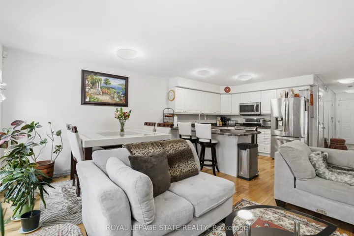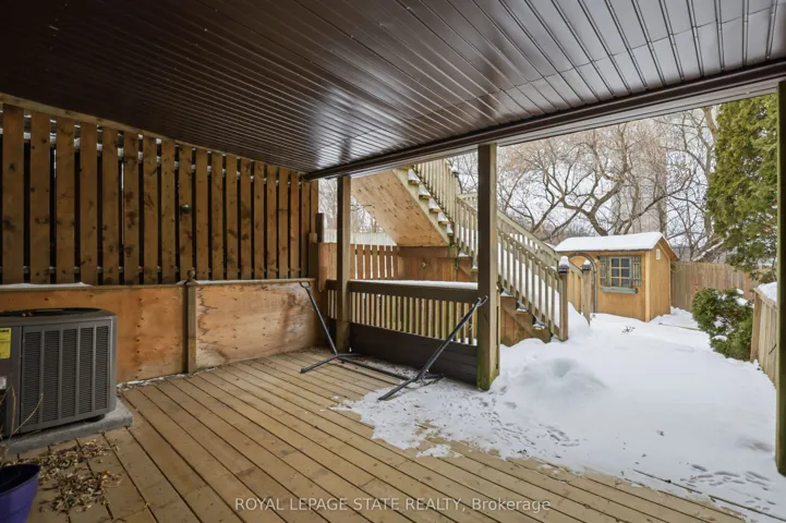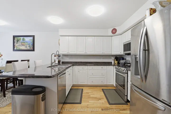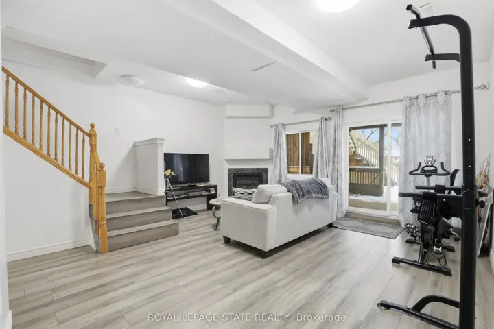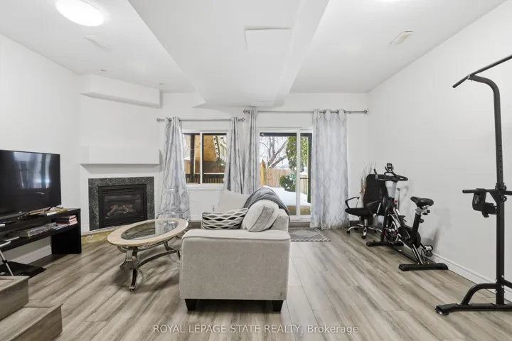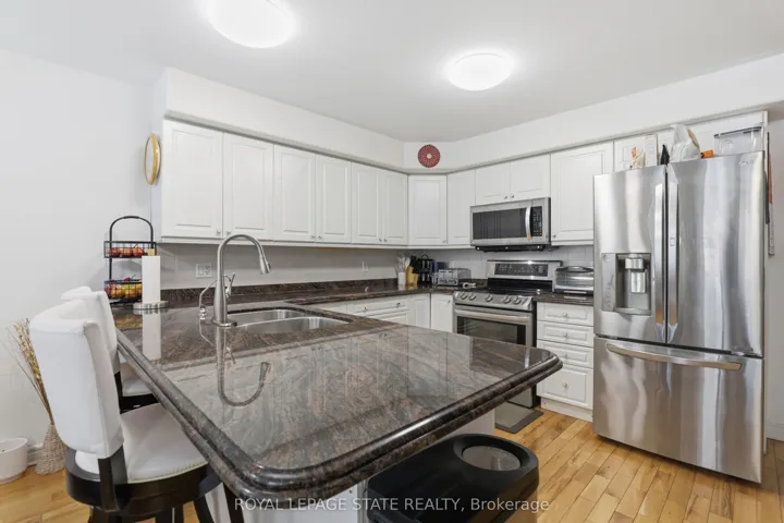 +"PublicRemarks": "3+1 bedrooms freehold townhouse with walkout basement onto a two-tier deck. No Condo Fees. Ceramic tile in front hallway with storage closet and 2 pc bathroom. Recently installed hardwood floor throughout home (Basement to 2nd floor). Updated kitchen with granite countertops. Large open concept living/dining room with patio doors to a private two-tier deck. Deck has staircase down to backyard with patio doors leading into finished basement. Three large bedrooms. Master bedroom with his and her walk in closets and ensuite privileges - 4pc bath with Jacuzzi tub, stand up shower and an amazing skylight. Second skylight in hallway of second level. Fully finished basement features newly installed flooring throughout. Large recreation room with corner gas fireplace, 3 pc bathroom and an additional huge bedroom. Backyard features 6ft x 8 ft shed and newer fencing. Private two car driveway and attached one car garage with interior access. Very quiet secluded area. Away from the hustle and bustle of every day traffic. Please allow overnight notice for showings."