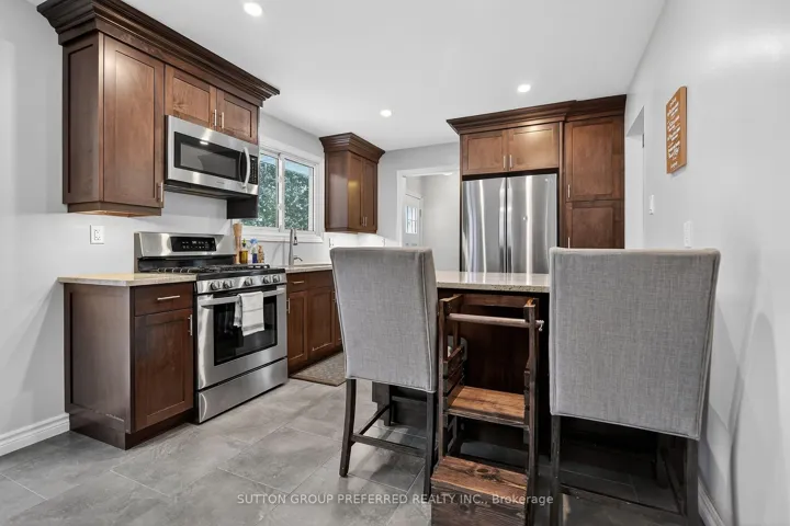 +"PublicRemarks": "Step into this beautiful 3 bedroom, 2 bath, 4 level side-split in desirable Byron where thoughtful updates meet everyday comfort! The heart of this home is the bright spacious living room which is next to the stunning kitchen and dining area expertly renovated by Millennium Design. A removed wall creates a great flow and highlights the gorgeous kitchen cabinets with elegant crown molding, gleaming granite counters and a convenient peninsula style island, perfect for meal prep and casual dining. The large format floor tiles bring a modern touch. A new patio door opens to your spacious pressure treated deck complete with a gas hookup for BBQs - ideal for summer entertaining! Inviting neutral tones create a warm, welcoming atmosphere. There is laminate flooring in the living room and hardwood in the three second floor bedrooms. Both bathrooms have been tastefully updated - the main 4 piece bath boasts a sleek tiled shower, modern vanity, and a space saving pocket door was added, while the lower 3 piece bath charms with funky patterned black and white floor tiles.The versatile 3rd level family room features an electric fireplace insert and wet bar, perfect for movie nights or entertaining guests. The 4th level offers fantastic bonus space - use it for storage, a home gym or a hobby area. Outside, the newer privacy fence creates a safe haven for kids and pets, while the lane way accommodates three vehicles. Located just steps from parks, Boler ski hill, scenic walking trails and top-rated schools, this home is perfect for young couples or established families. Pride of ownership is evident throughout & notable updates include: roof (2022), furnace (2018), owned water heater (2022), most windows plus interior & exterior doors have been replaced. This cherished home is ready for your family's next chapter! (Matterport Sqft above grade 1,073, 3rd level sqft 565)"