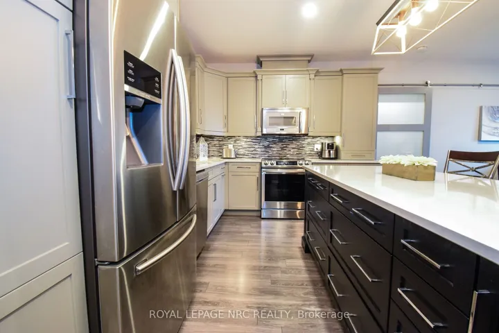 +"PublicRemarks": "Welcome to Walker's Creek. Built in 2013 and nestled into a great north end area, this condo has it all. This 2 bedroom, 2 bathroom unit is just under 1200 sq ft and boasts countless upgrades from the custom Elmwood kitchen with quartz covered centre island to high end tile and flooring to the oversized glass shower in the ensuite bathroom. The open concept floor plan allows for spacious entertaining or just relaxing. The dining room overlooks the open air balcony with eastern views. The large primary bedroom includes a 3 piece ensuite with large tiled and glass shower and a grand walk in closet.The second bedroom makes a great den and includes a custom built in with a large screen TV. The large second bathroom allows for a conveniently located stackable washer/dryer situation. Walkers Creek Condos is conveniently located across from the Grantham Plaza where you will find a grocery store, bank, hardware store, Tim Horton's and more. Just a short walk next door brings you to the pharmacy and fast food. The building is very well kept and includes one under ground parking spot and a designated locker, great for any over flow. This secure building offers a common room with a full kitchen and capacity for at least 30 guests. Great for those big family parties. The study is complete with comfy couches and lots of books to enjoy. Electric bbqing is permitted however, there is a bbq and gazebo for owner use located on the property. Just minutes from the QEW, NOTL and the Welland Canal Recreation path. Move in ready and easy to show! Note that condo fees have been paid up to November 2026."