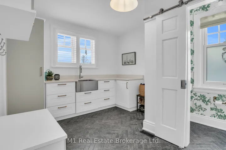 +"PublicRemarks": "This classic red brick gem in Fergus has serious curb appeal that stops people in their tracks. Solid and timeless outside, but inside? Pure modern comfort that pulls you right in and won't let go. Step through the door, and the bright herringbone tile flows into wide white oak floors, setting an easy, open vibe. The kitchen grabs you first-big soapstone island, custom cabinets, built-in barista bar, sleek Gaggenau appliances, and a cozy banquette perfect for family meals or friends hanging out late. Across the hall sits the living room, then a generous mudroom/pantry with powder room (goodbye tracked-in dirt). Upstairs: four well-sized bedrooms, all fresh and stylish, sharing a crisp 4-piece bath. Climb one more flight to the showstopper loft-ultimate family room with a gas fireplace and a long wall of west-facing dormer windows pouring in warm afternoon light. Movie marathons, game nights, lazy weekends... this space makes it all feel effortless. Downstairs, a bright rec room waits (extra bedroom, gym, office-your call), plus laundry, utility, and smart storage. Outside is your private oasis: pro landscaping, huge custom patio, firepit, lush lawn, mature trees, thick cedar hedging for serious privacy, garage access, plus TWO driveways (one double) so parking fights are history. Right in the heart of Fergus, quick to shops, schools, river trails, and easy commutes. This isn't just a house... It's where every day feels warmer, easier, and way more fun. You have to see it. One walk-through and you'll be sold."
